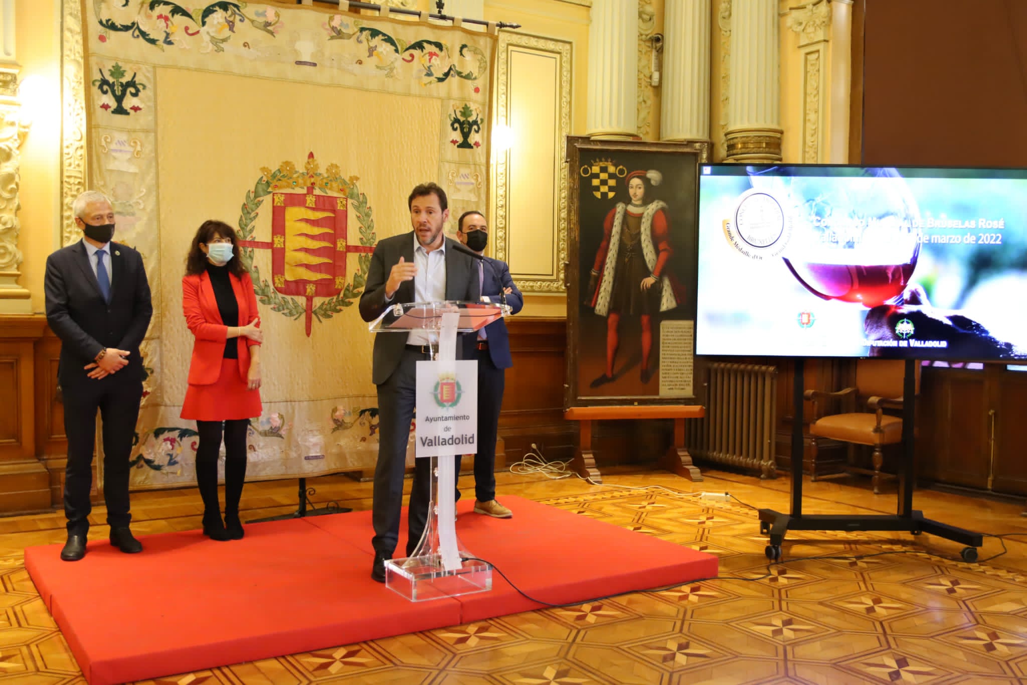 El alcalde de Valladolid, Óscar Puente; el vicepresidente de la Diputación, Víctor Alonso Monge; la concejala de Cultura y Turismo, Ana Redondo; y el presidente del Concurso Mundial de Bruselas, Baudouin Havaux, han anunciado la celebración en Valladolid de la Sesión de Vinos Rosados del Concurso Mundial de Bruselas en 2022.