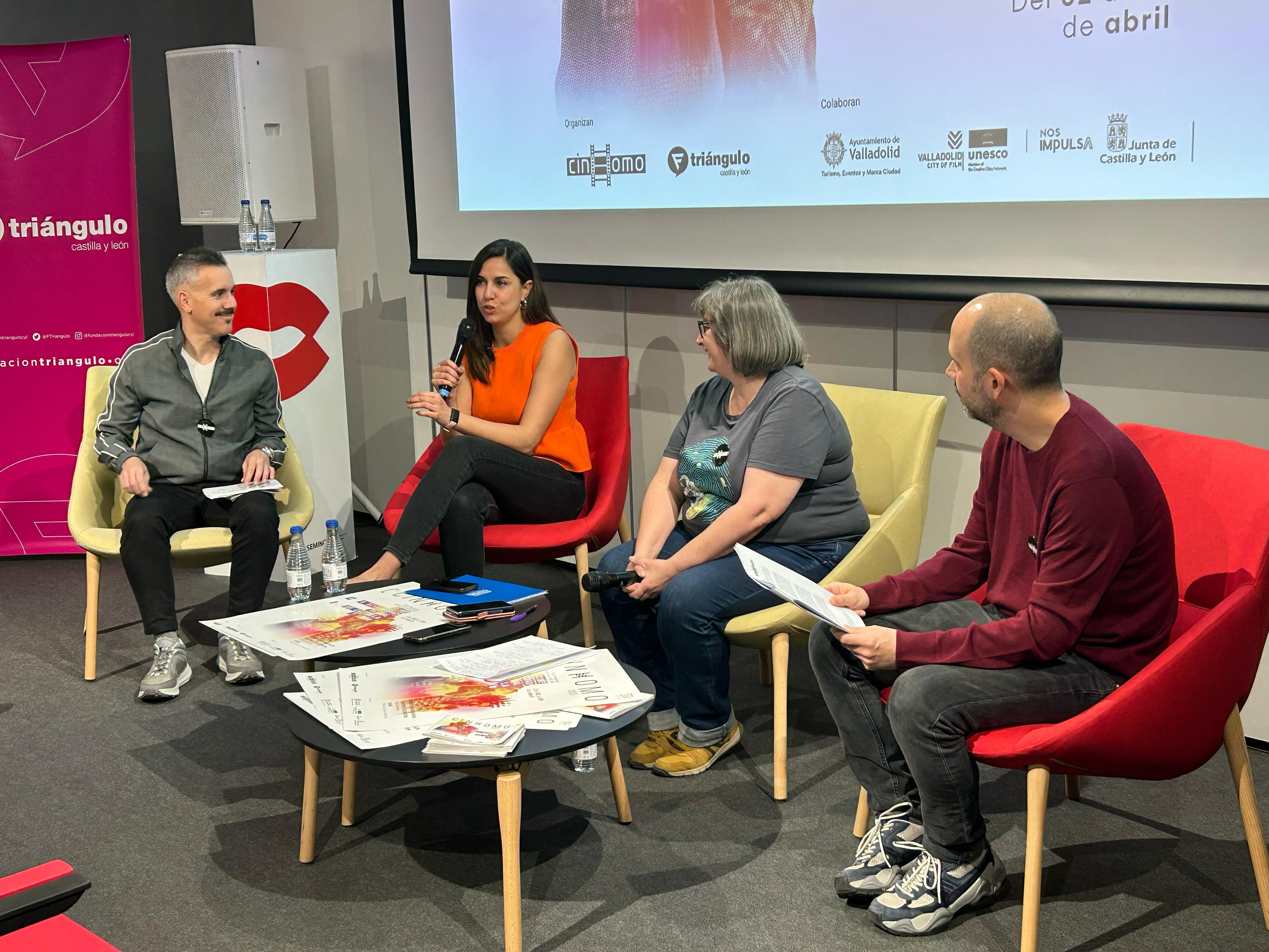 La concejala de Turismo, Eventos y Marca Ciudad, Blanca Jiménez, y la presidenta de la Fundación Triángulo Castilla y León, Yolanda Rodríguez, junto con parte del equipo de voluntariado del festival, Juan López y Juan Bautista, han presentado en el ‘Espacio Seminci’ del Teatro Calderón la 24º edición de la Muestra Internacional de Cine y Diversidad Sexual, CINHOMO, que se celebrará del 2 al 9 de abril en Valladolid.