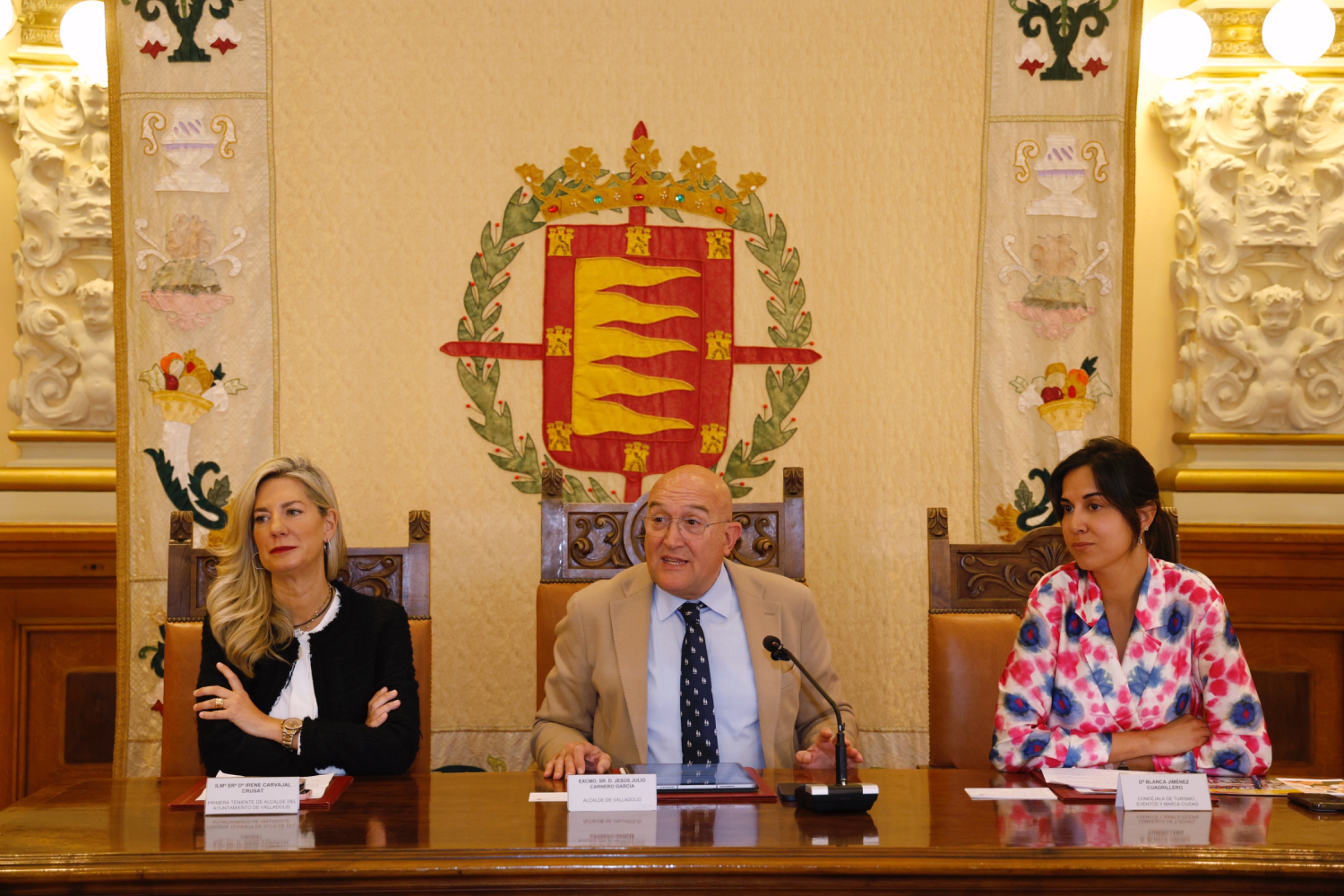 El alcalde de Valladolid, Jesús Julio Carnero, y las concejalas de Turismo, Eventos y Marca Ciudad, y Educación y Cultura, Blanca Jiménez e Irene Carvajal, respectivamente, han presentado hoy la programación de actividades que el Ayuntamiento de Valladolid ha organizado del 3 al 20 de mayo con motivo de las fiestas patronales de San Pedro Regalado 2024.