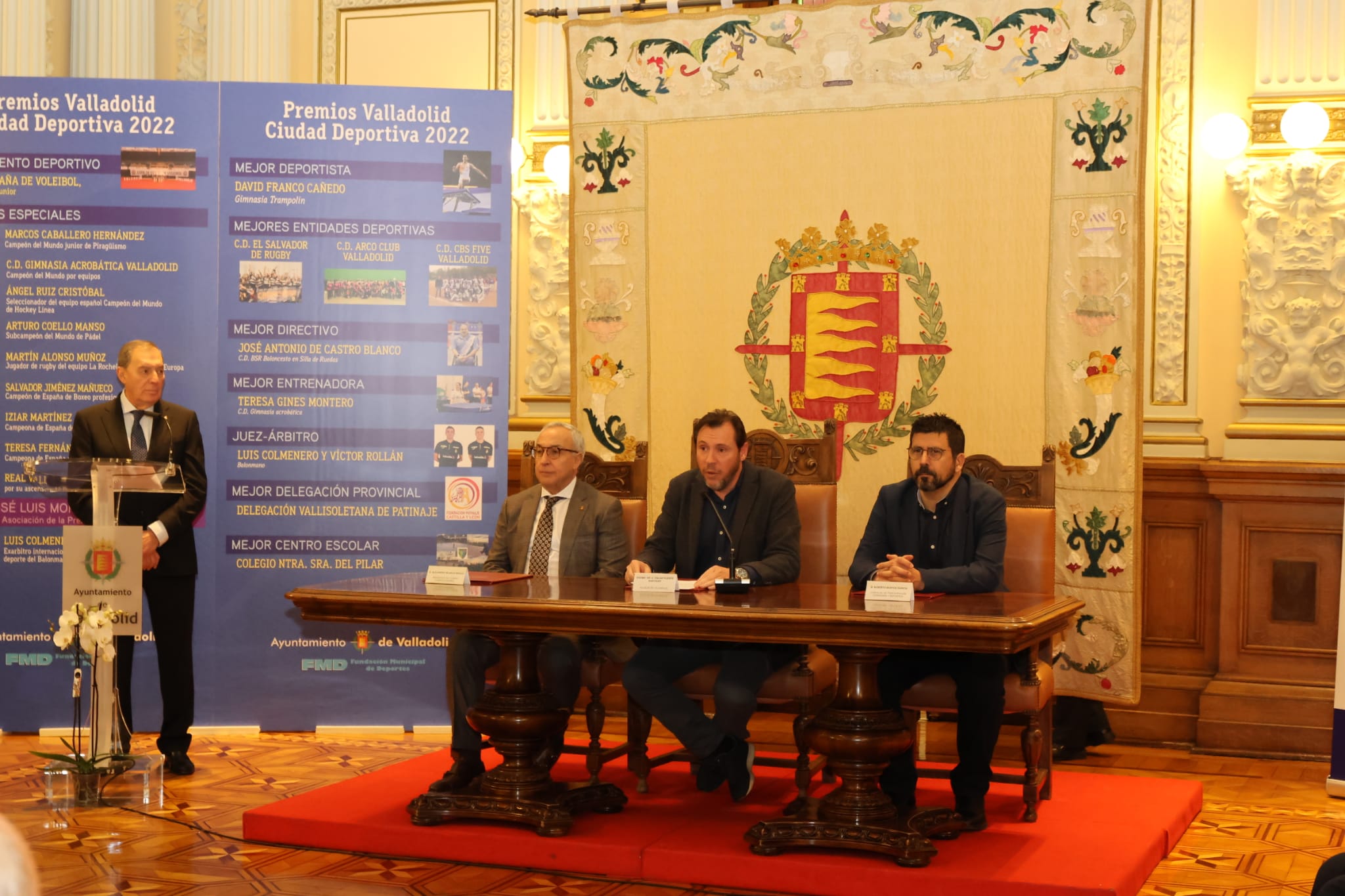 En esta edición de los premios "Valladolid Ciudad Deportiva", superadas ya las necesarias cautelas que hubieron de mantenerse a causa de la pandemia, a consecuencia de las cuales el pasado año este evento se celebró en el Centro Cívico José Luis Mosquera, el Salón de Recepciones de la Casa Consistorial ha vuelto a albergar la entrega de estos prestigiosos galardones.