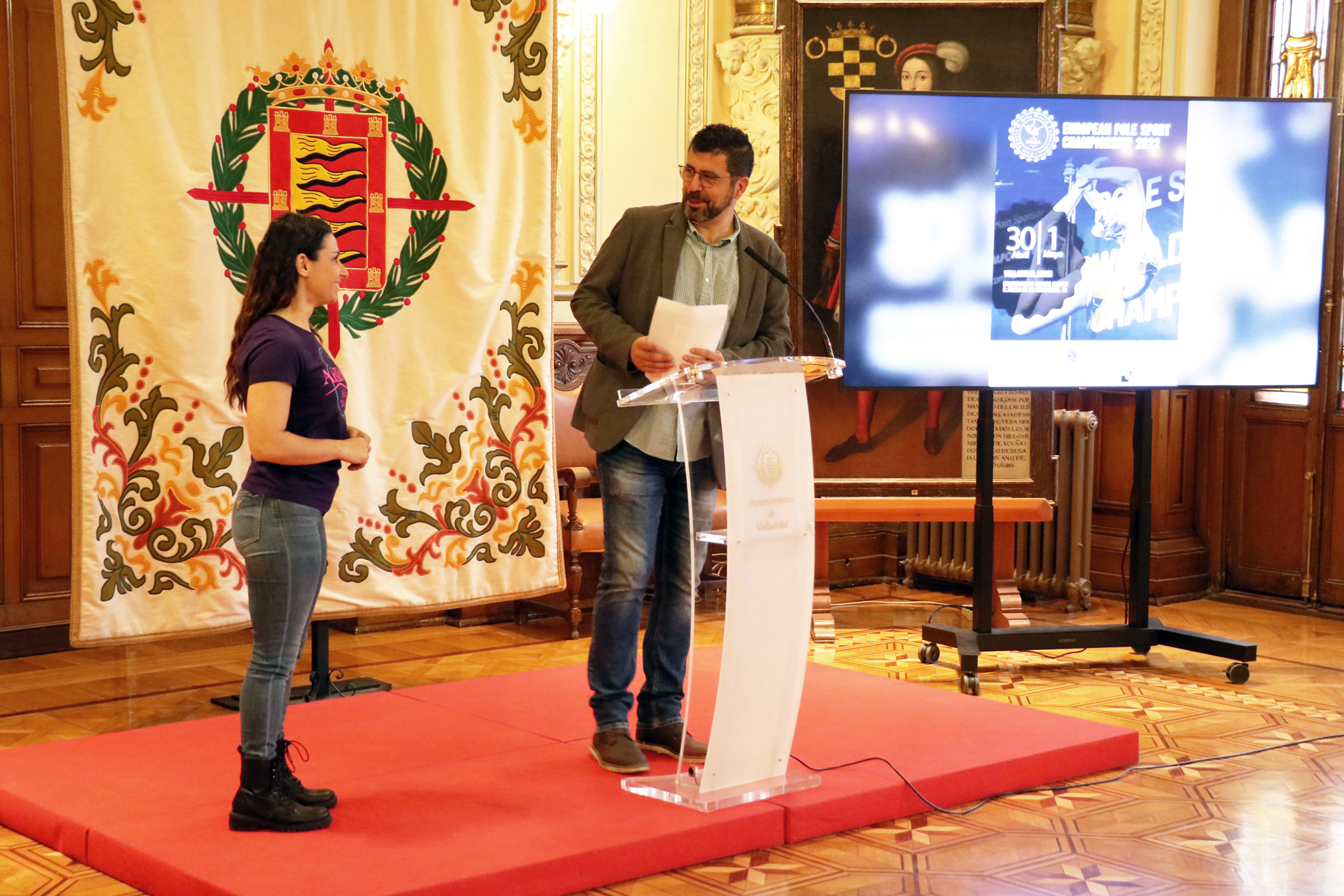 El concejal de Participación Ciudadana y Deportes, Alberto Bustos, ha presentado el Campeonato Europeo de Pole Sport que se celebrará del 30 de abril al 1 de mayo en el Polideportivo Miriam Blasco junto con la organizadora del certamen, Ivana La Piana.