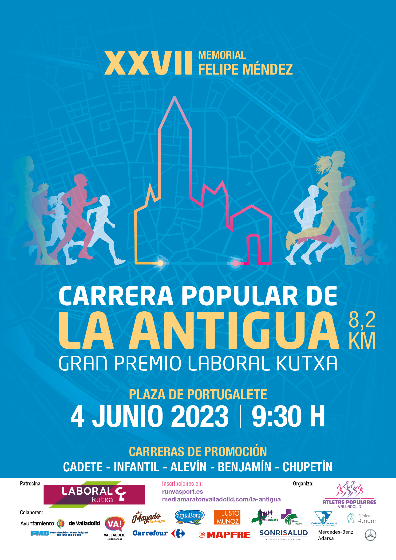 La carrera de la Antigua cuenta con el patrocinio de Laboral Kutxa y la colaboración del Ayuntamiento de Valladolid a través de la Fundación Municipal de Deportes, Mapfre, Mercedes-Benz Adarsa, Carrefour, AquaBona, pan Mayado, Justo Muñoz, Farmacia de Anca, FarmaRunners, Centro Veterinario Campo Grande, Clínica Atrium y Sonrisalud.