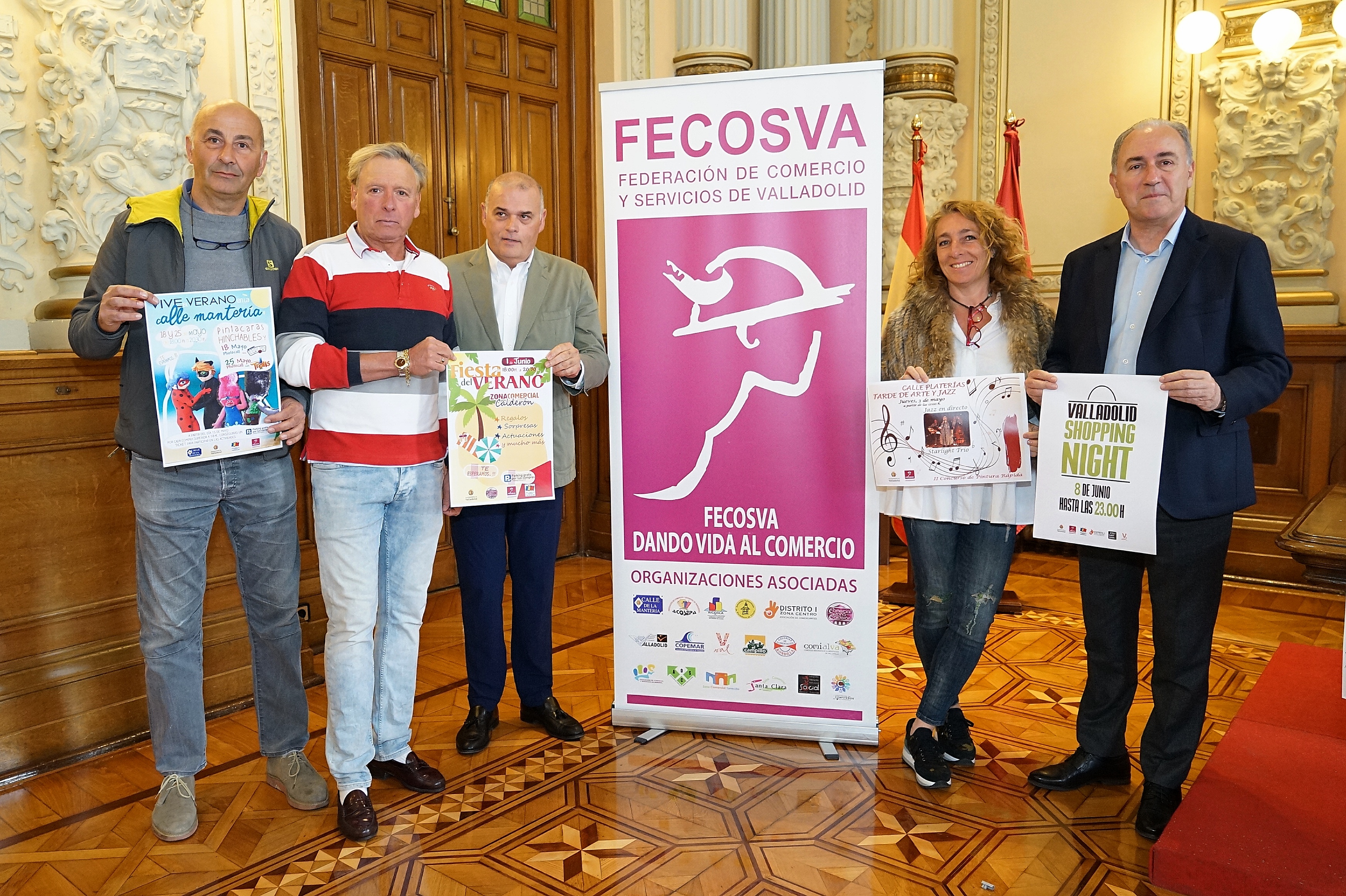 El concejal de Hacienda y Promoción Económica, Antonio Gato y, el presidente y la vicepresidenta de Fecosva, Javier Labarga y Raquel Castaño, han presentado hoy, en el Ayuntamiento de Valladolid, la Campaña Primavera - Verano organizada por la Federación de Comercio y Servicios de Valladolid (FECOSVA), junto con las Asociaciones de comercio, y la Asociación de Comerciantes del Centro Distrito I y con la colaboración del Ayuntamiento de Valladolid. Estas actividades tendrán un coste estimado de 21.500 euros, de los cuales el Ayuntamiento aportará el 90 %.