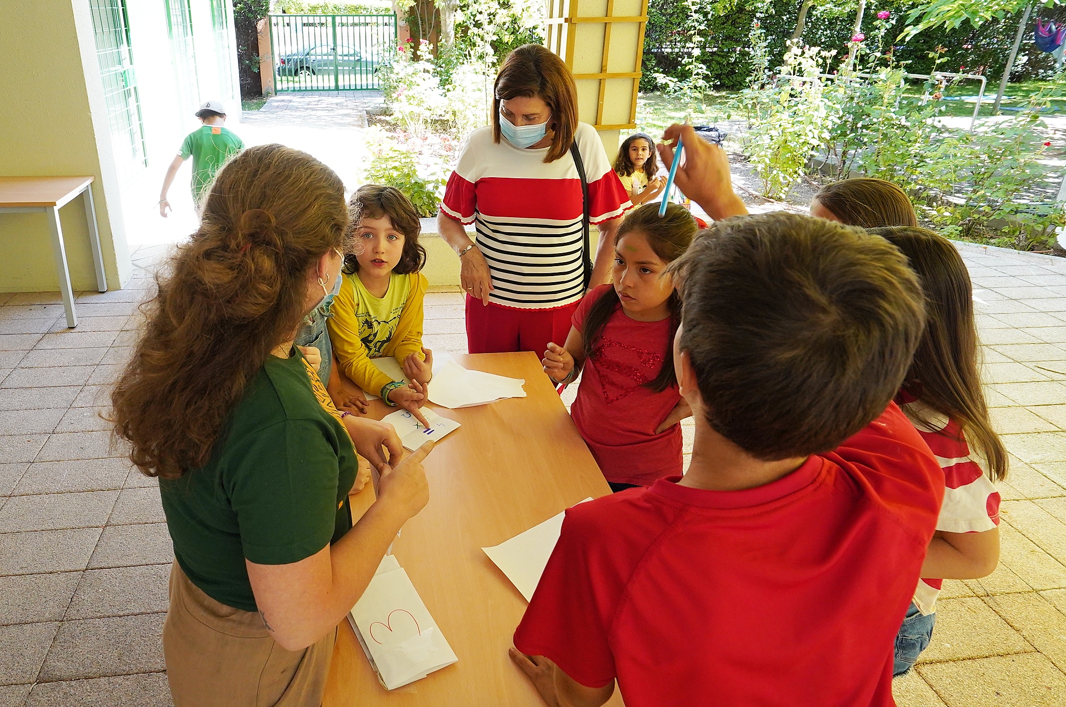 Teniendo en cuenta las recomendaciones sanitarias el número de niños y niñas que asisten a este campamento es de 20 con un rango de edad entre los 3 y los 12 años y desarrollan todas sus actividades al aire libre utilizando la zona de jardín y una carpa de 150m cuadrados que se ha instalado para que los niños y niñas puedan estar confortablemente alejados del sol y del calor.