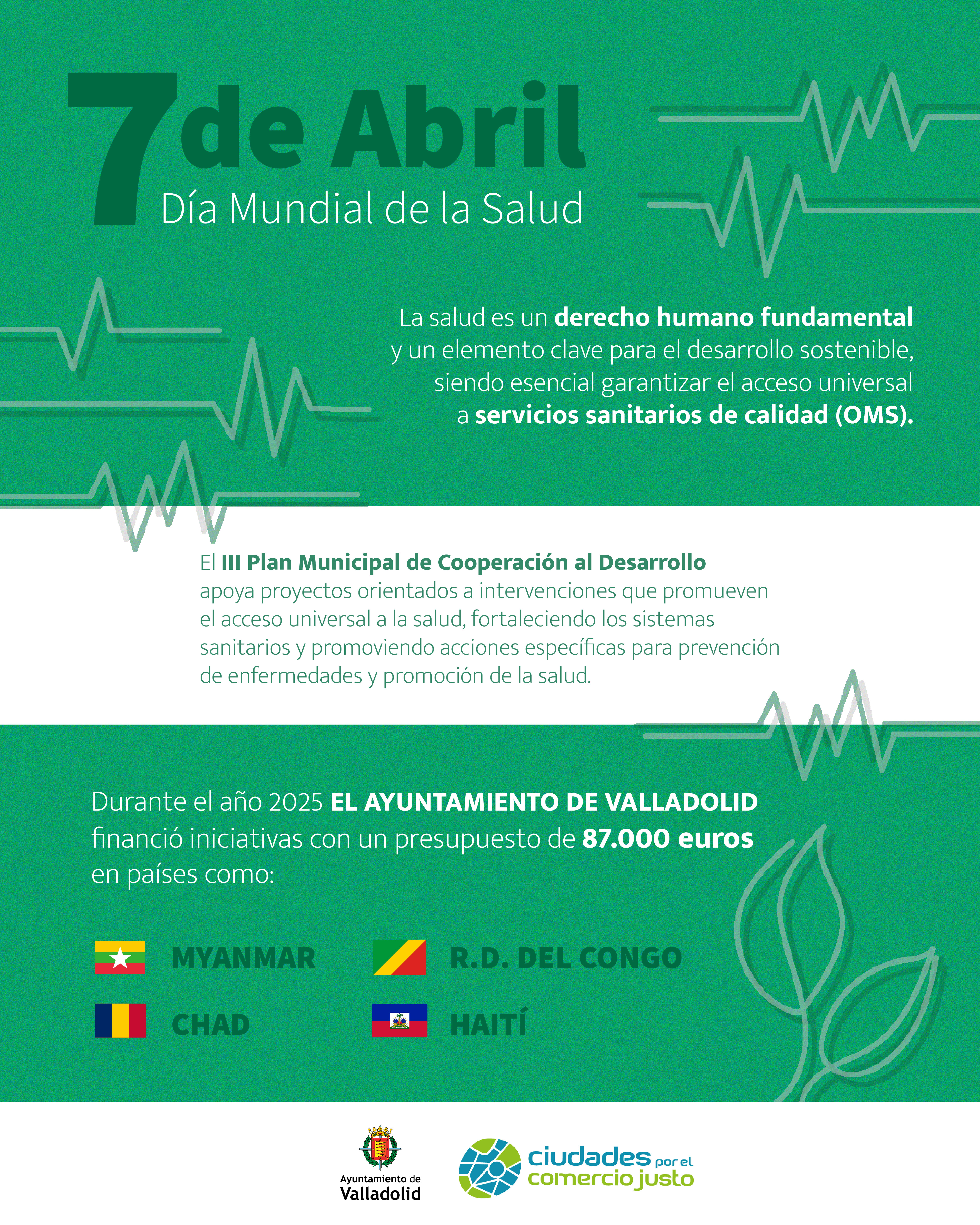 Con motivo del 7 de ABRIL, Día Mundial de la Salud, el Ayuntamiento de Valladolid reafirma su compromiso de apoyo a los países empobrecidos, a través de su política municipal de Cooperación al Desarrollo.