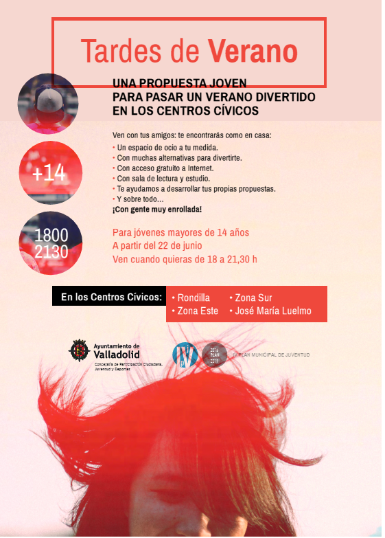 "Tardes de verano" es una iniciativa del Área de Participación Ciudadana del Ayuntamiento de Valladolid que pretende ofrecer una alternativa de ocio para jóvenes de 14 a 30 años durante los meses de julio y agosto.