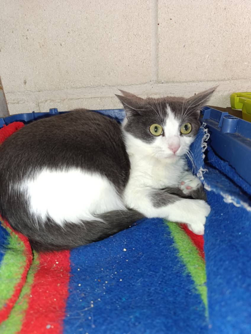 Es muy cariñoso y juguetón. Tiene un ojo enucleado.