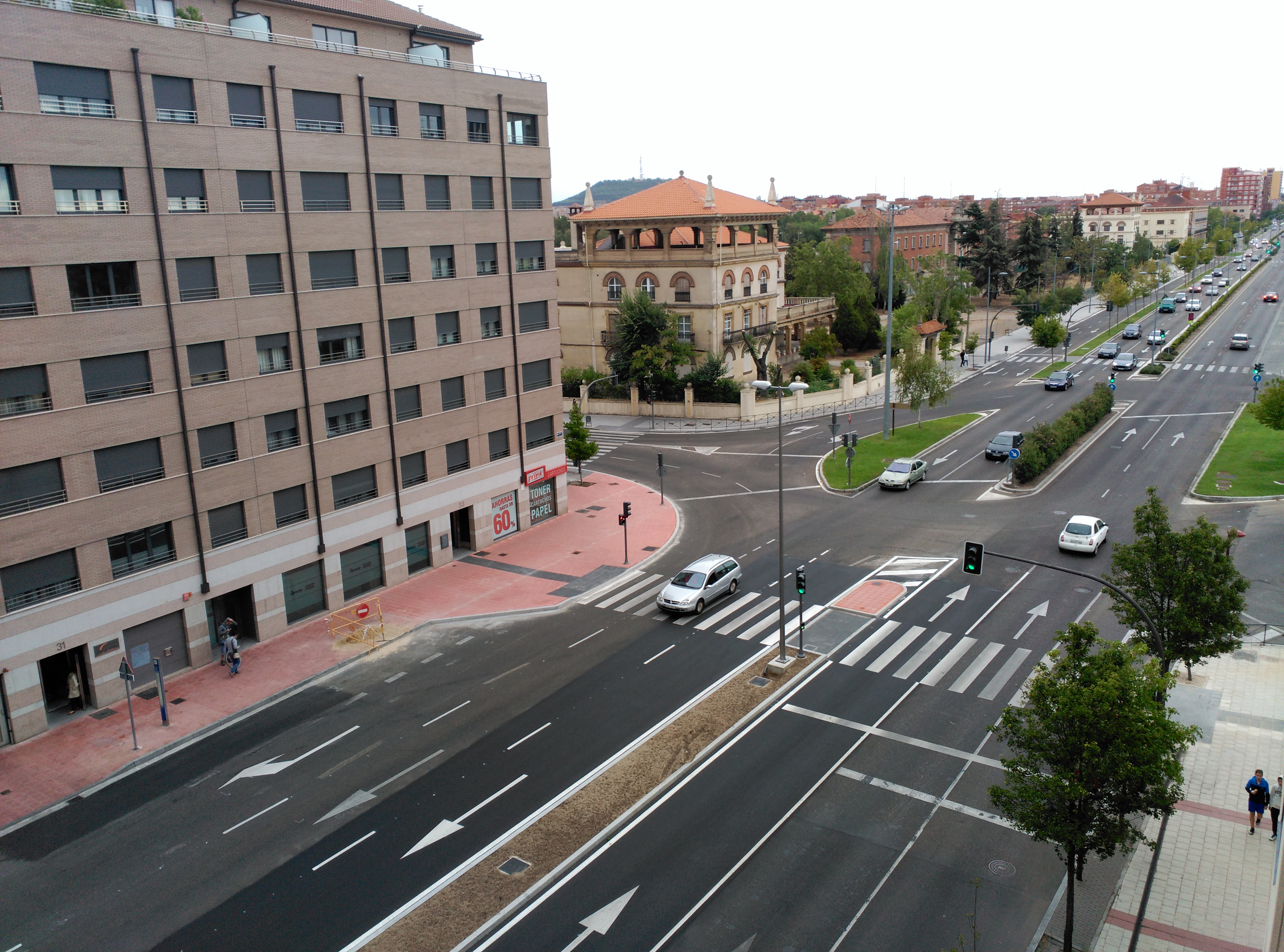 Tras la profunda remodelación practicada hace pocos años en la mayor parte de esta vía, en este punto había quedado una transición brusca entre la obra nueva y la mediana preexistente, que resultaba incómoda e inconveniente. La actuación ejecutada ha consistido en el estrechamiento y rectificación de esta mediana para configurar una transición suave. La operación también se ha aprovechado para trasladar el paso de peatones de este punto a su posición natural, adyacente a la intersección con el paseo de Farnesio y la calle de Adolfo Suárez.