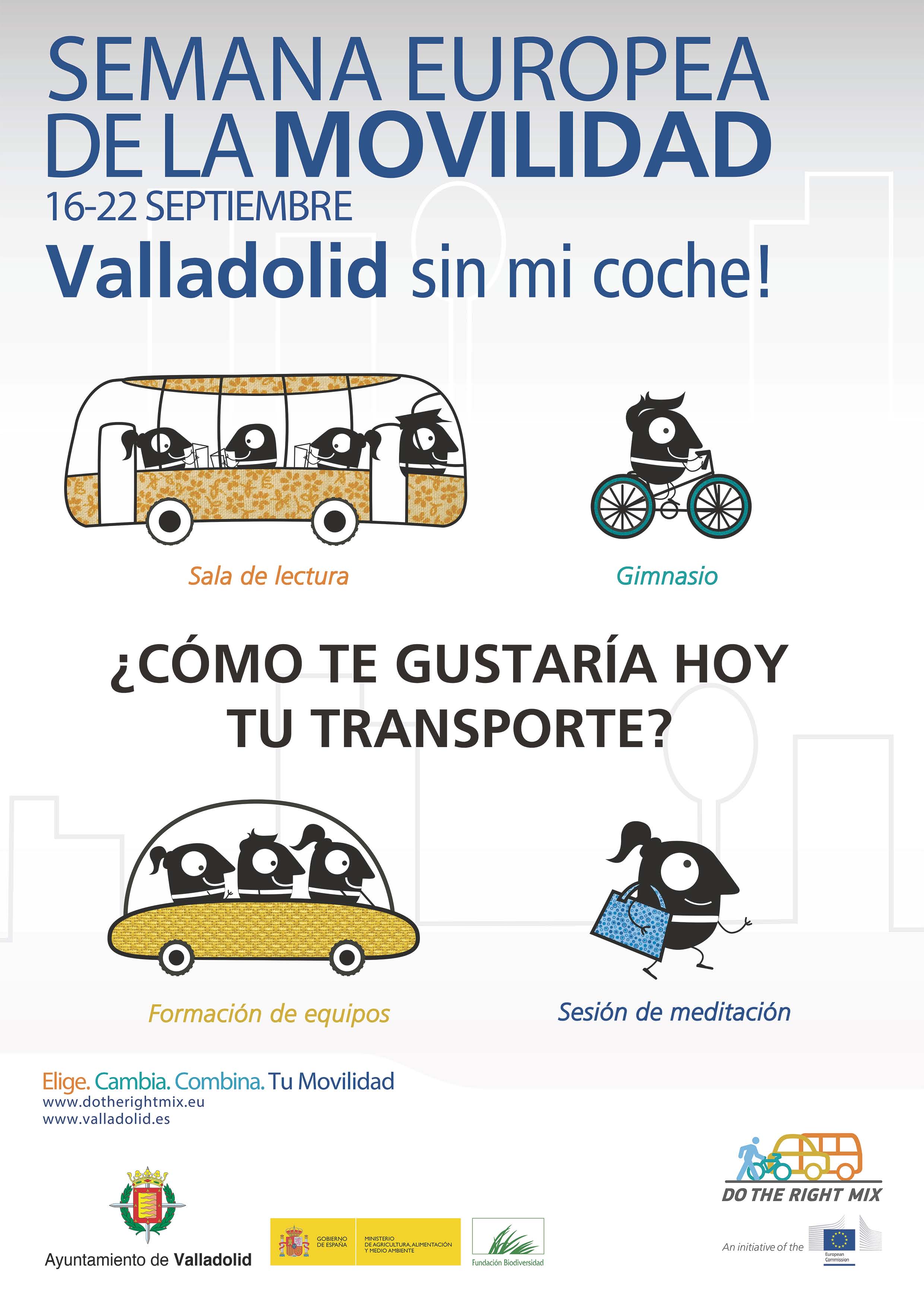 La Semana Europea de la Movilidad, a la que apoya el Ayuntamiento de Valladolid, se extiende desde el día 16 de septiembre para culminar el día 22 con la Jornada Europea "¡La ciudad sin mi coche!", iniciativa en la que participa el Ayuntamiento de Valladolid.