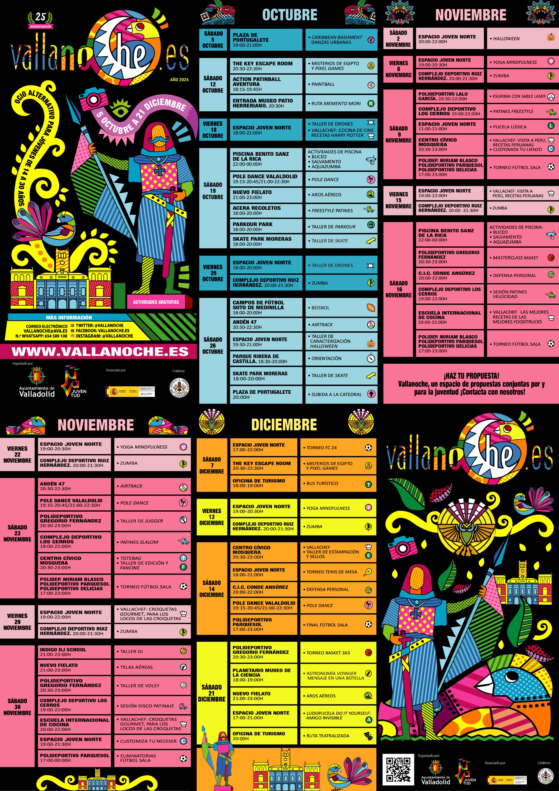 Vallanoche arranca mañana sábado, 5 de octubre, consolidándose como un referente en el ocio alternativo de Valladolid. Todas las actividades son gratuitas, y se requiere de inscripción previa a través de la página oficial de Vallanoche www.vallanoche.esThis link will open in a pop-up window.