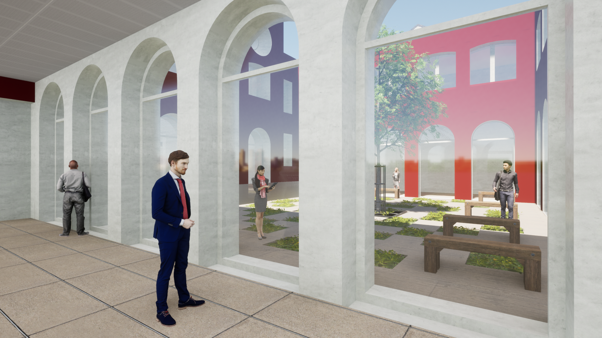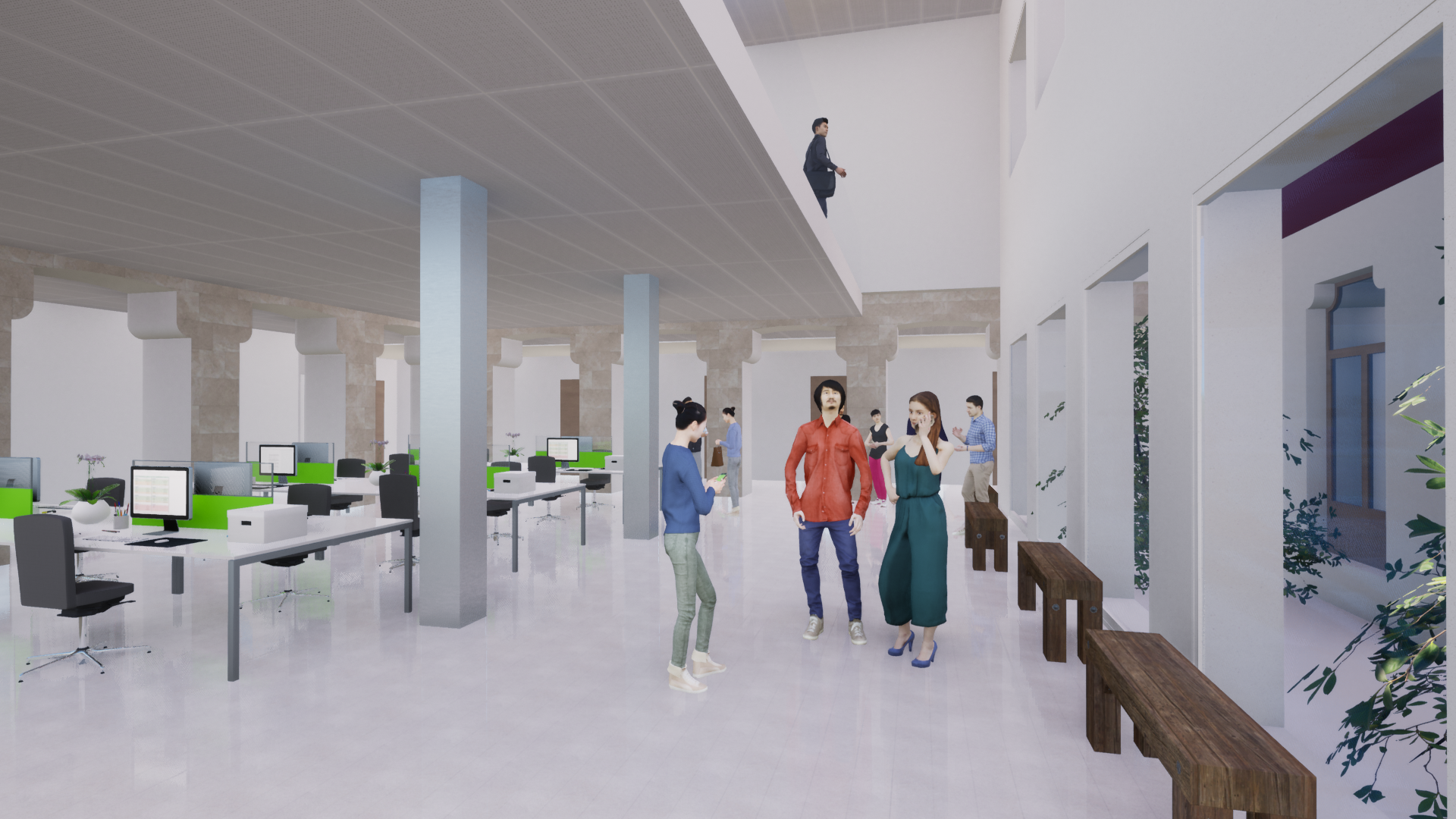 Además, el proyecto tiene una parte muy singular que es la creación de un ‘Ágora’ en planta sótano-primera recuperando la antigua estructura del patio del edificio, que se corona con una cubierta verde y estancial.