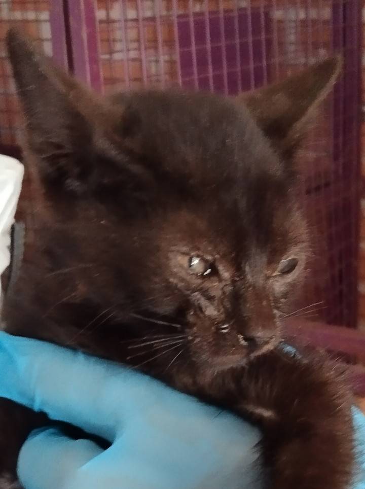 Llega con infección respiratoria grave y desnutrido. Lleva un collar antiparasitario. Se ha extraviado de su casa. es positivo a leucemia
