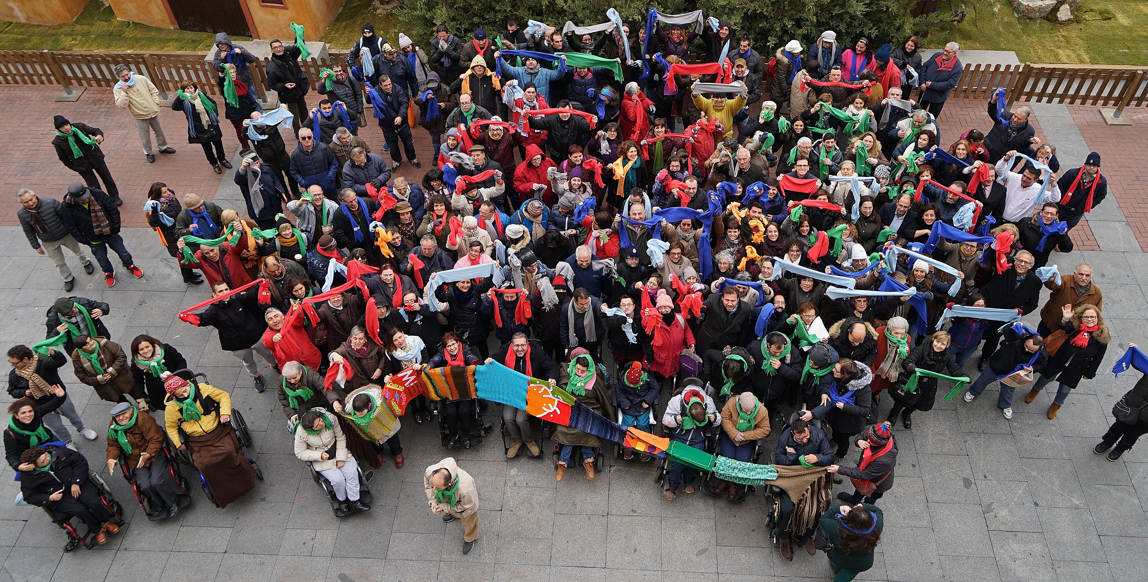 Intervinieron, así, representantes de las entidades miembros del Consejo Municipal de Personas con Discapacidad, participando en una actividad colaborativa para la elaboración de una gran bufanda, "una bufanda diversa, variada, que representa su camino, una bufanda llena de matices y colores, que, a veces, se enreda, porque el camino no es fácil de recorrer".