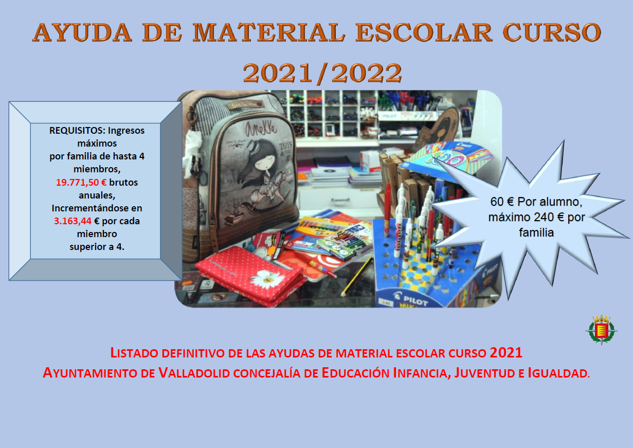 Ayuda de material escolar curso 2021/2022 | Portal Web del Ayuntamiento de Valladolid