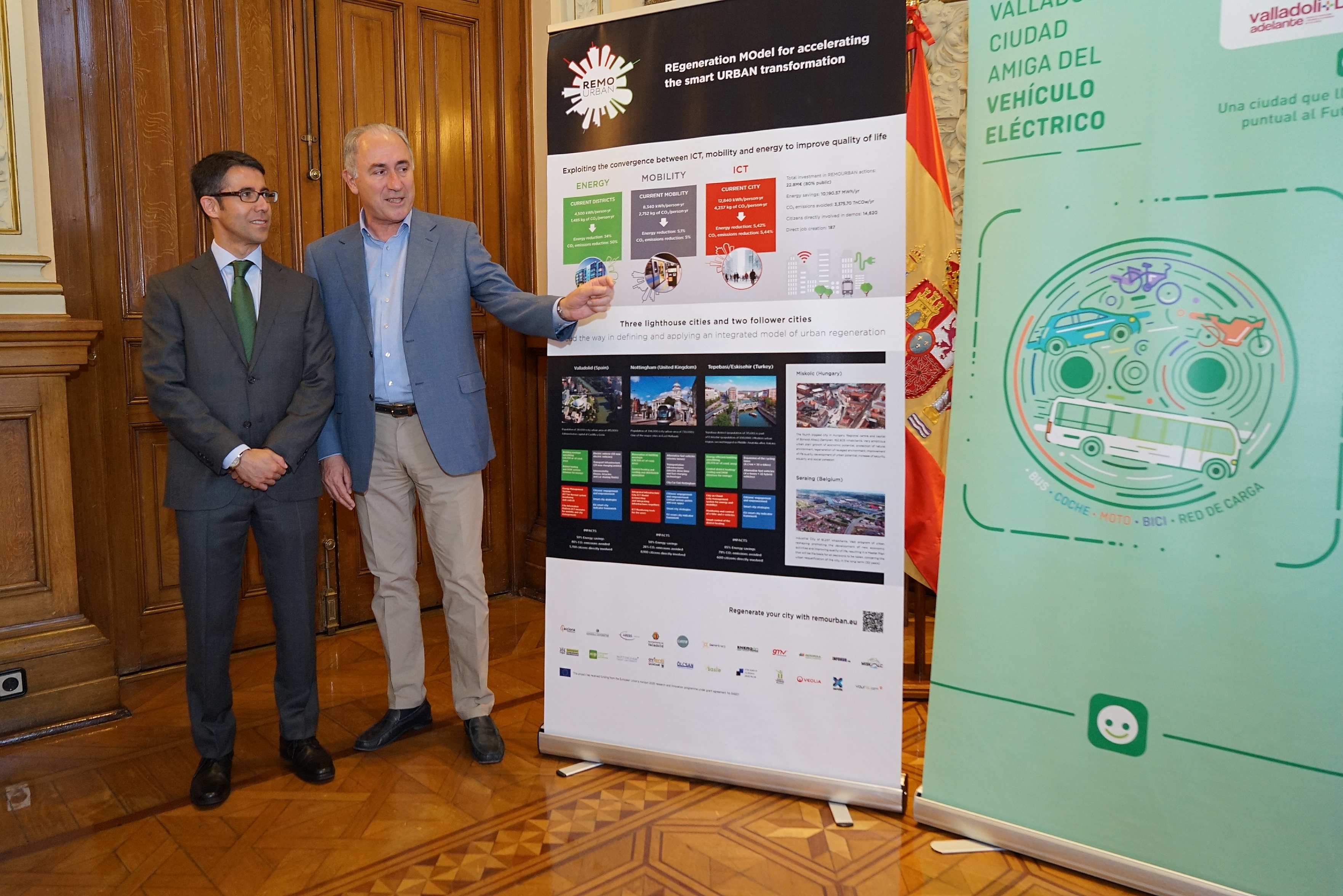 El Ayuntamiento, con una amplia experiencia en el desarrollo de Valladolid como laboratorio urbano de la movilidad eléctrica, e Iberdrola, que aporta su liderazgo en movilidad verde como desarrollador de soluciones de recarga para vehículos eléctricos y como gestor de carga habilitado, unen de nuevo esfuerzos por la movilidad sostenible, en este caso bajo el paraguas del proyecto Remourban, coordinado por la Fundación Cartif y perteneciente al Programa de Energía Segura, Limpia y Eficiente del área de Smart Cities and Communities del Programa de innovación e investigación "Horizonte 2020" de la Comisión Europea.