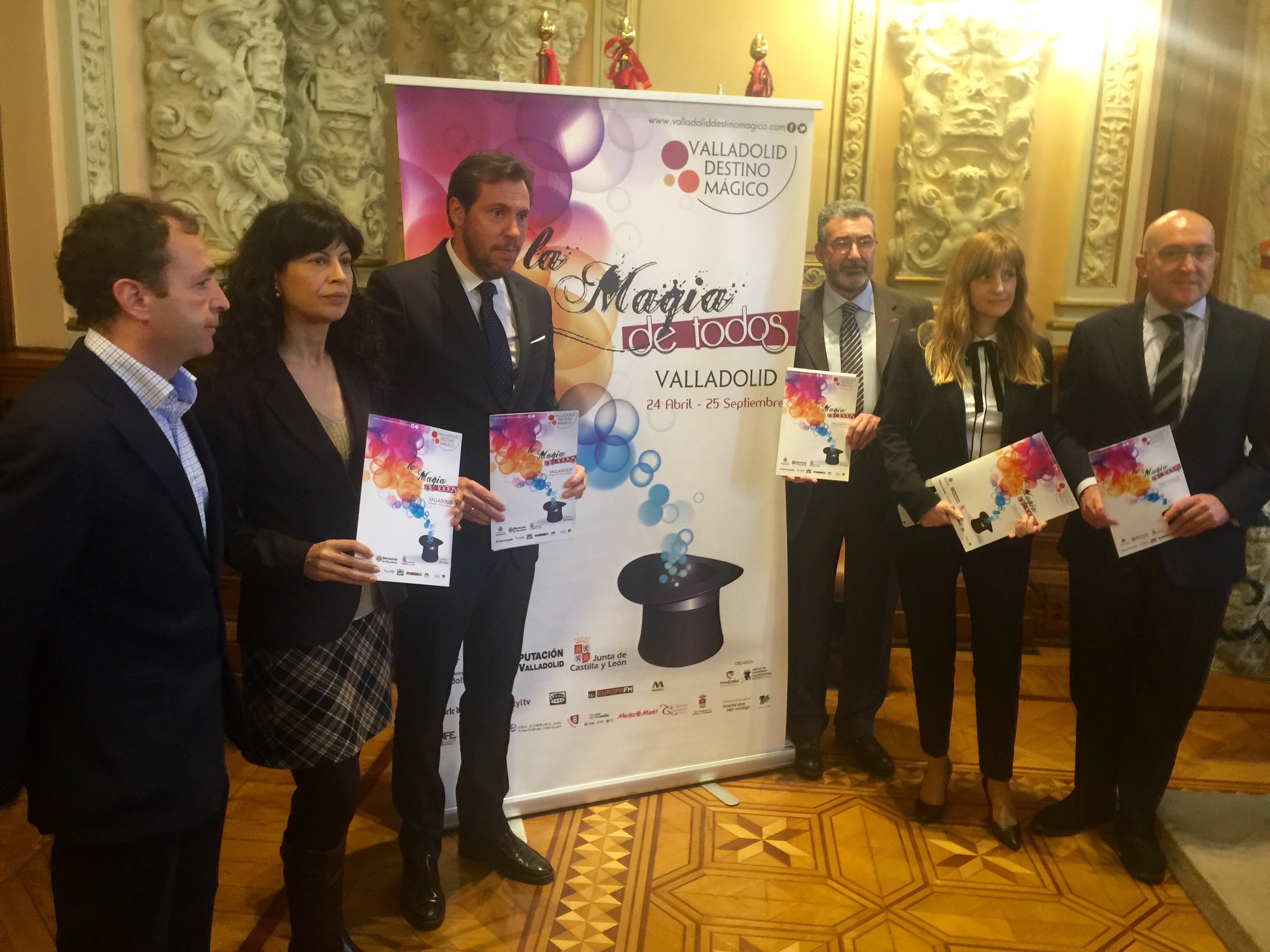 Esta mañana se ha presentado en rueda de prensa la II Edición de VALLADOLID DESTINO MÁGICO. El acto ha tenido lugar en el Excmo. Ayuntamiento de Valladolid y a él han asistido el Excmo. Alcalde de Valladolid Óscar Puente, el Presidente de la Diputación Jesús Julio Carnero, la concejala de Cultura y Turismo Ana Redondo, la Directora General de Políticas Culturales de la Junta de Castilla y León Mar Sancho y el Presidente de la Asociación Internacional de Magos Ángel José de Vicente Hernando.