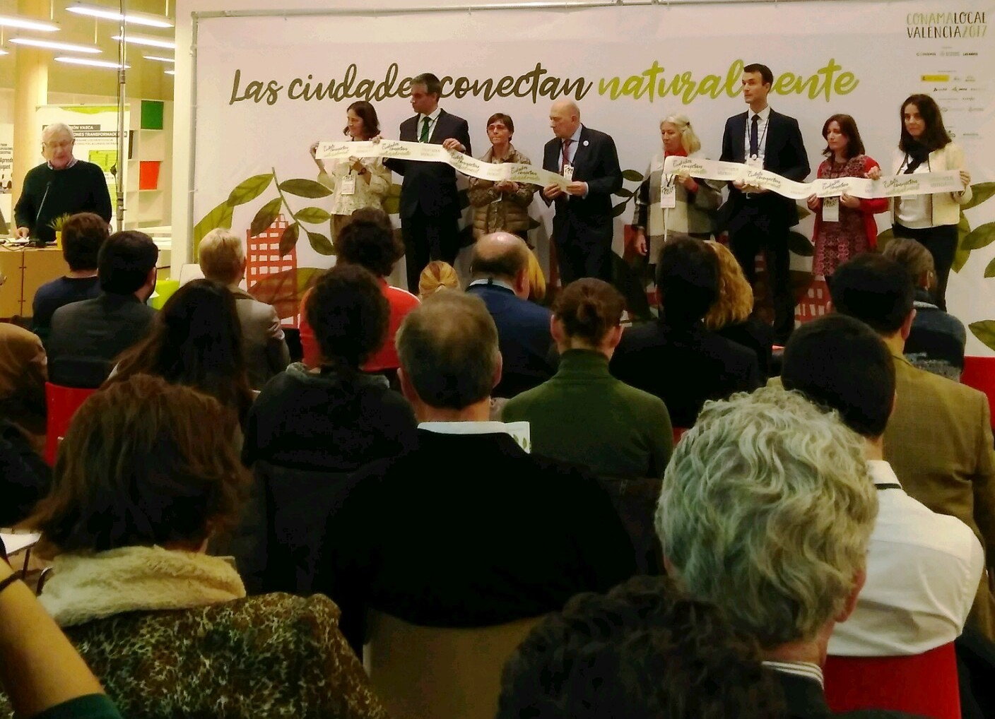 María Sánchez participa en Valencia en el acto inaugural, un acto simbólico en el que se pretende representar el diálogo entre ciudades, junto a Alicia Torrego, gerente de la Fundación Conama; Concepción Piñeiro, de Altekio – Iniciativas por la Sostenibilidad.; Iñaki Prusilla, concejal de Medio Ambiente y Espacio Público del Ayuntamiento de Vitoria-Gasteiz; Ruud Schuthof, subdirector regional de ICLEI (Iniciativa de Gobiernos Locales por la Sostenibilidad); Ramón Minoves, Asesor de Espacios Naturales y Medio Ambiente de la Diputación de Barcelona, Ana Etchenique, vicepresidenta de CECU-Confederación de Consumidores y Usuarios; Gonzalo Echagüe, presidente de la Fundación Conama; y Joan Ribó, alcalde de Valencia.
