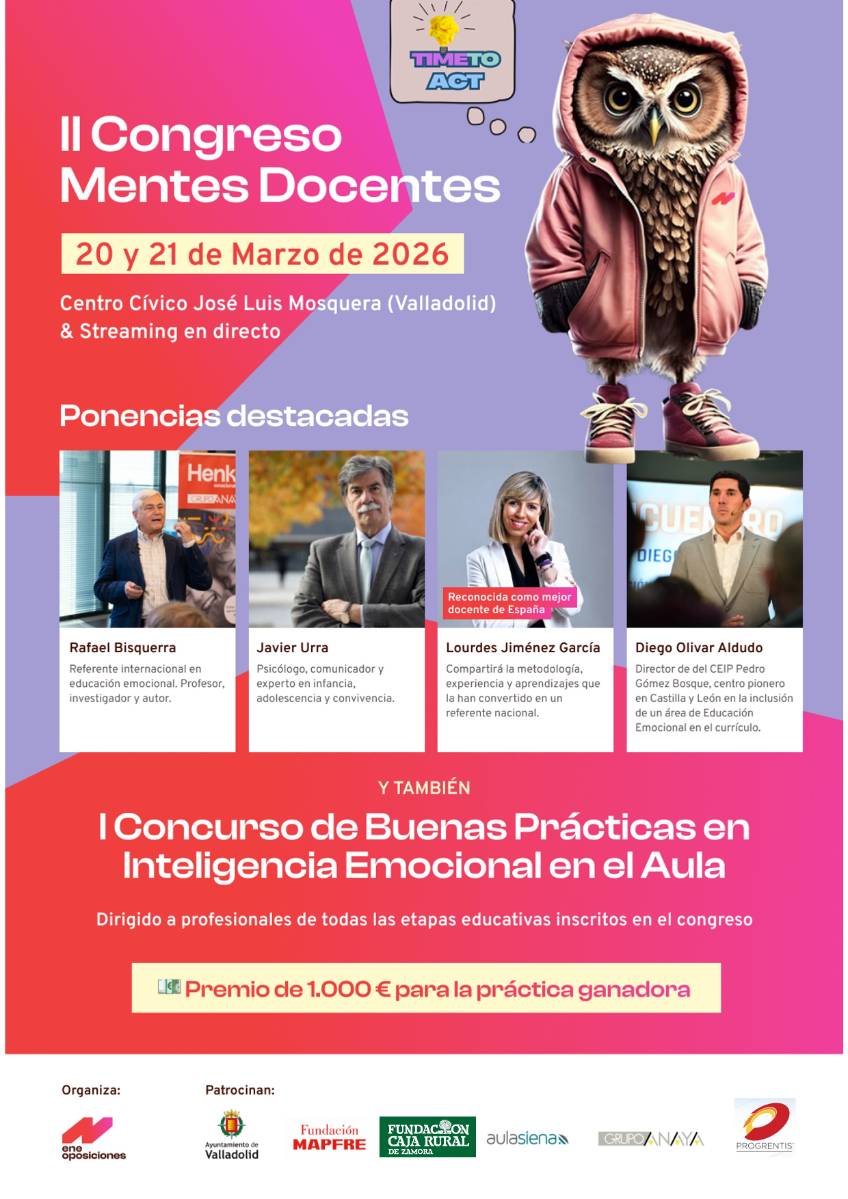 La cita reunirá a los mayores referentes en el ámbito educativo y emocional del país.Valladolid acogerá entre la tarde de mañana viernes, 20 de marzo, y la mañana del sábado, día 21, la segunda edición del Congreso Nacional de Educación Emocional ‘Mentes Docentes’,...