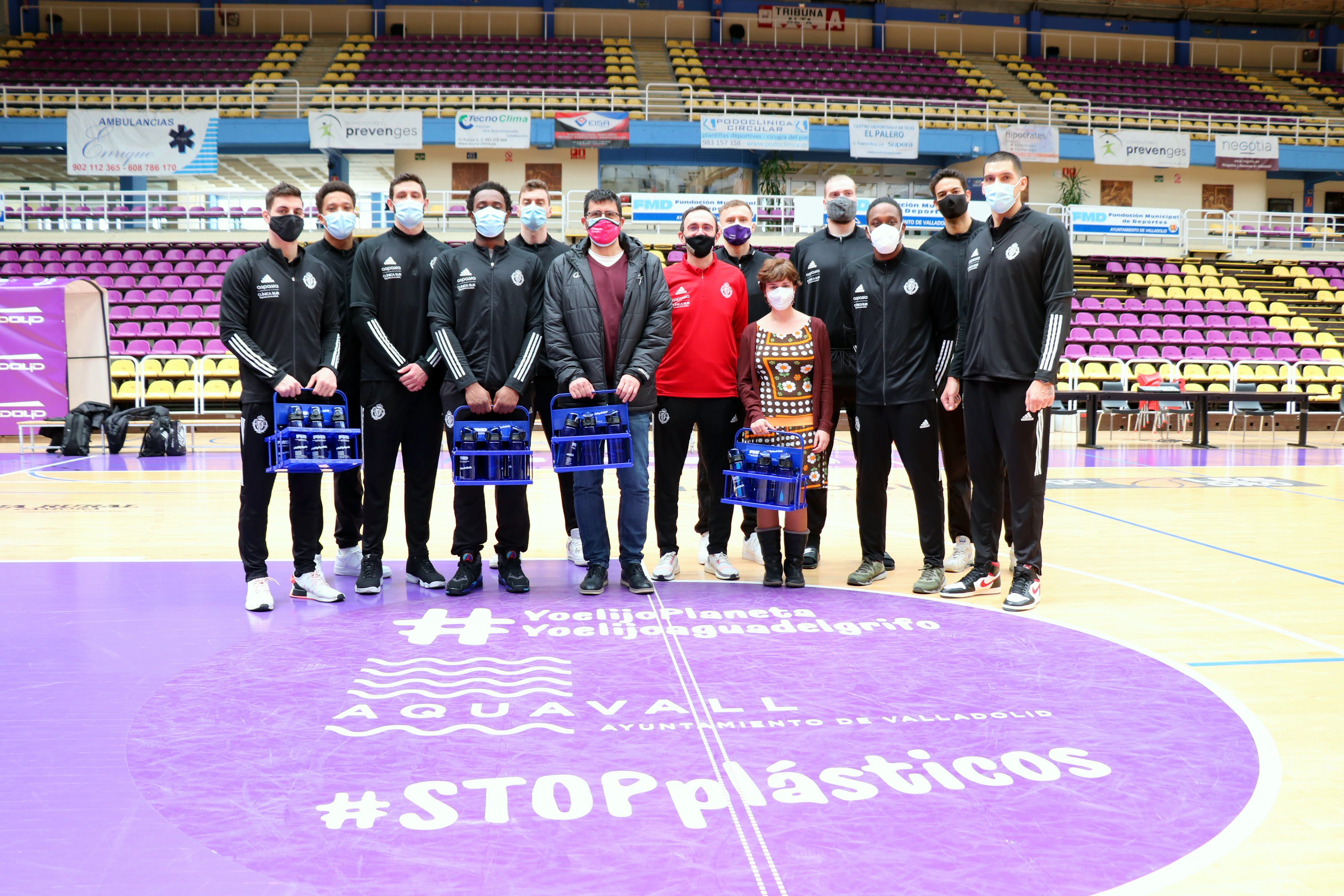 Aquavall ha entregado al Clínica Sur-Aspasia RV Baloncesto cestas de seis bidones cada una para que se puedan rellenar con agua del grifo tanto en los partidos como en los entrenamientos.