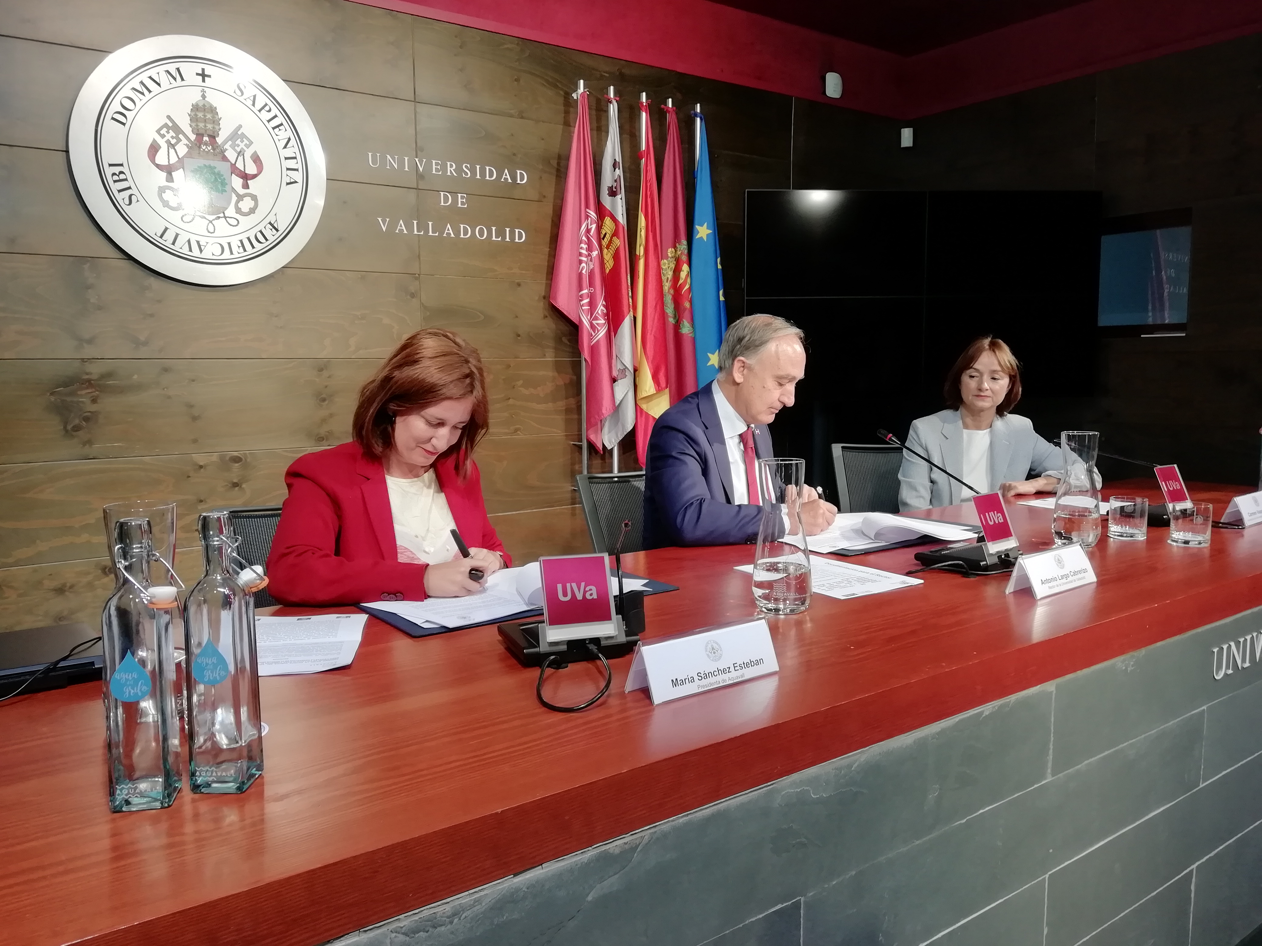 Este protocolo de colaboración entre la Universidad de Valladolid y AQUAVALL contempla acciones para fomentar el consumo de agua del grifo y evitar la utilización de envases de plástico de un solo uso, dando un paso a favor de la consecución de los Objetivos del Desarrollo Sostenible.
