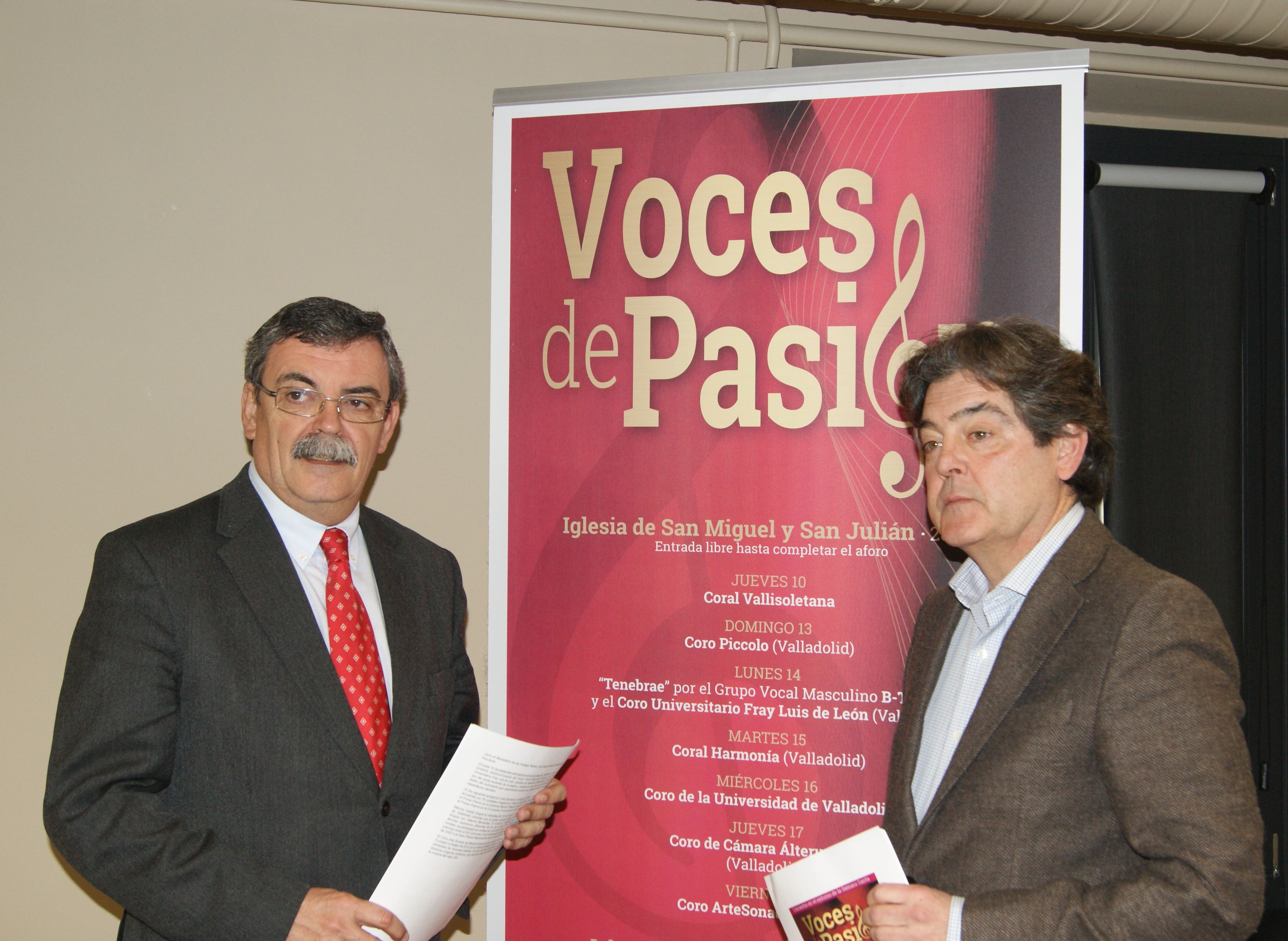 La Fundación Municipal de Cultura (FMC) del Ayuntamiento de Valladolid ha presentado esta mañana el ciclo de conciertos en torno a la Semana Santa ‘Voces de Pasión’, que arranca el próximo 10 de marzo y se desarrollará hasta el día 18. El programa está organizado por la FMC en colaboración con la Junta de Cofradías de Semana Santa de Valladolid y con el patrocinio de la Junta de Castilla y León.