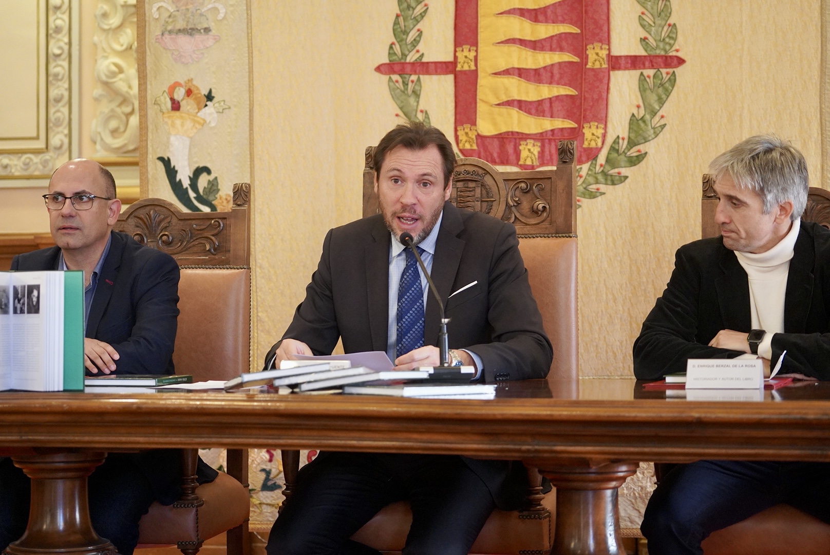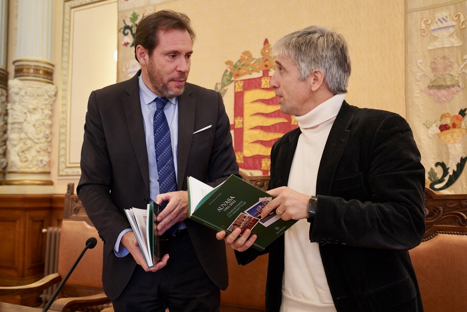 El alcalde de Valladolid, Óscar Puente, ha presentado el libro "AUVASA 1982 – 2022. Compartimos un mismo viaje", con el que se conmemoran los 40 años de historia de AUVASA, acompañado por el concejal de Movilidad y Espacio Urbano, Luis Vélez, y el autor del libro, Enrique Berzal. Al acto han asistido, además, distintos miembros de la Corporación Municipal.