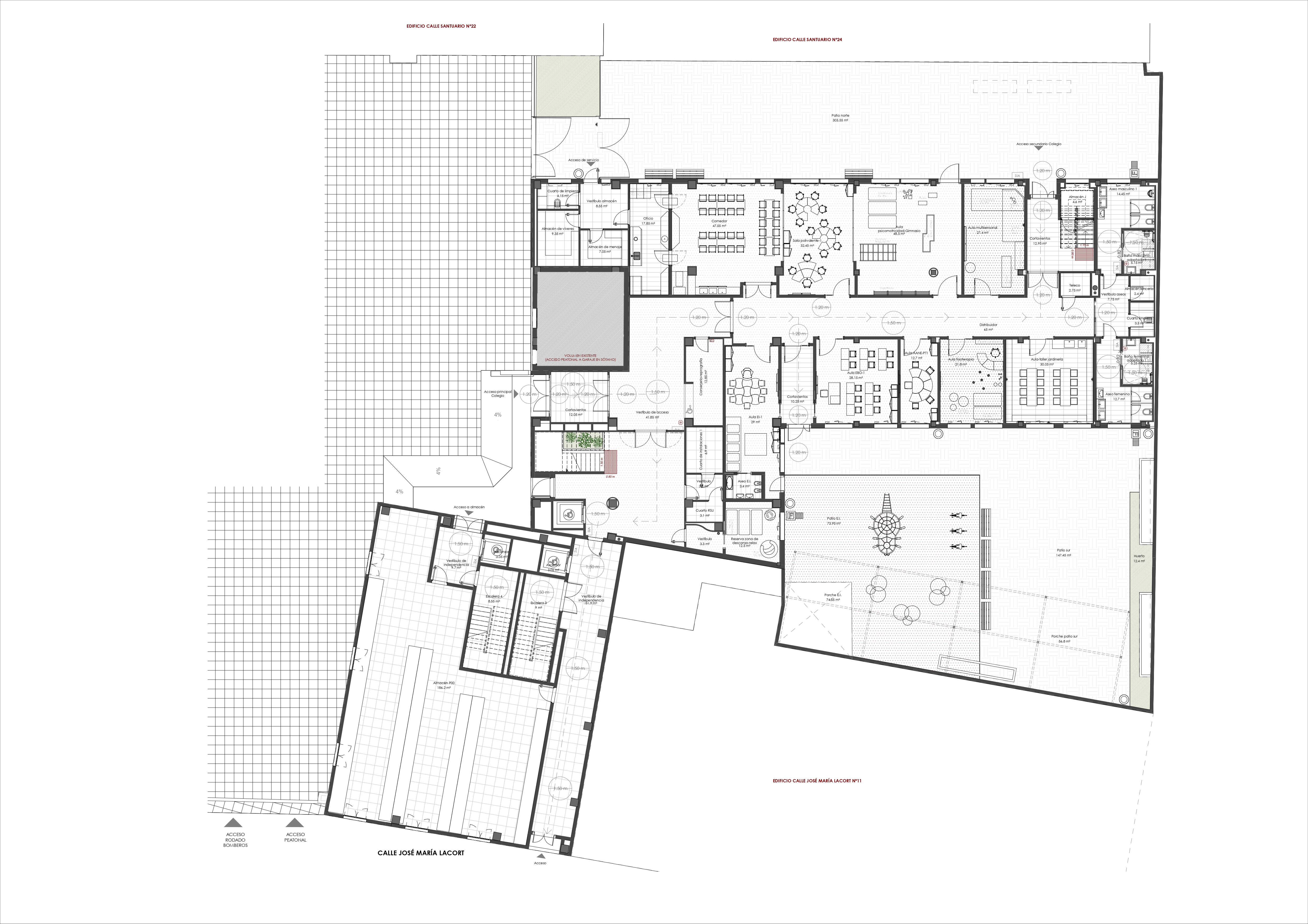 - Patio norte, situado en planta baja, con acceso directo desde el vestíbulo noreste del edificio, y desde el Espacio Libre de la manzana.