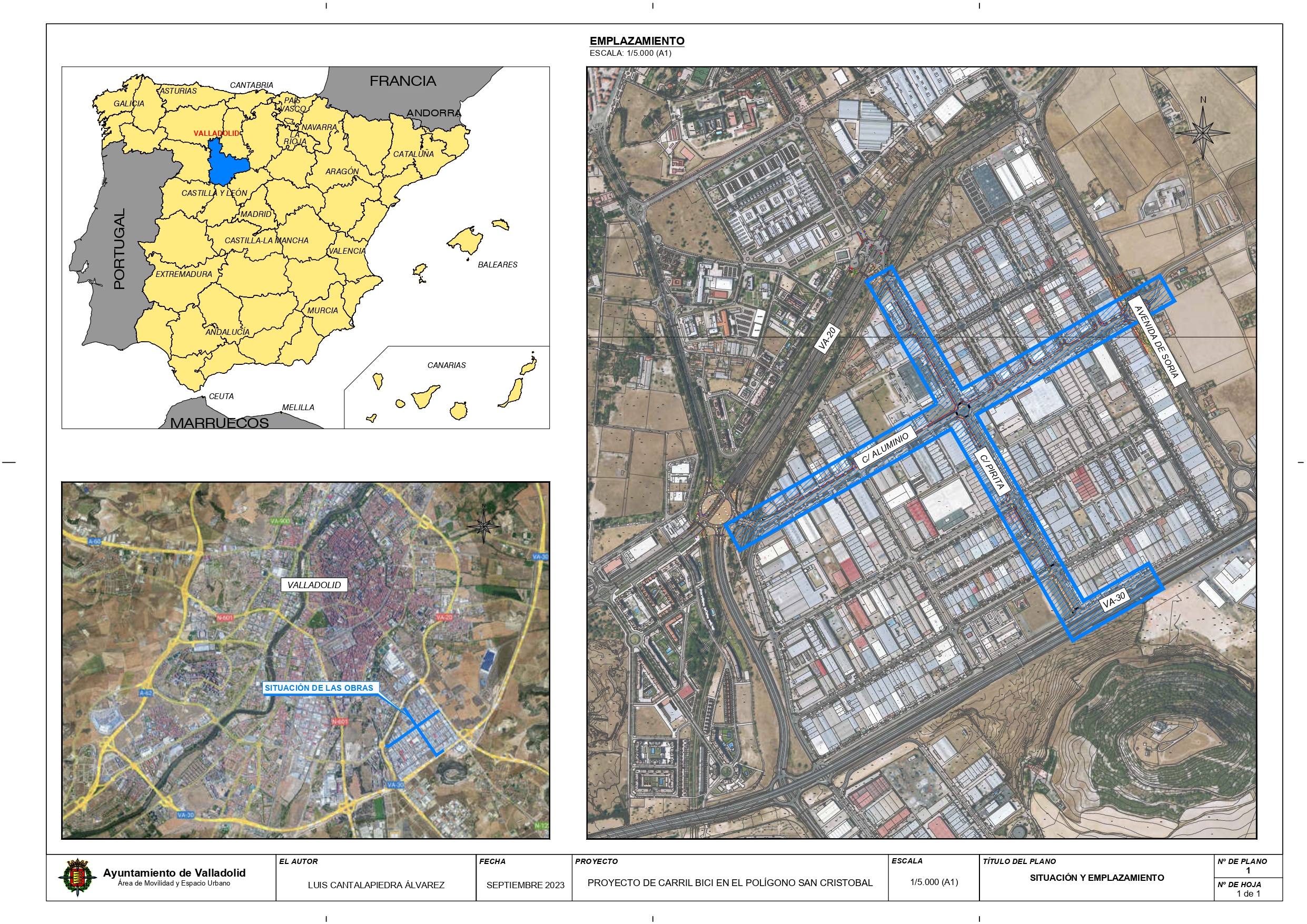 Con esta actuación se pretenden ejecutar dos corredores en sendas calles principales del Polígono de San Cristóbal, de manera que sirvan de red de distribución de los ciclistas a los diferentes puntos de atracción existentes en esta zona, ya que las calles Aluminio y Pirita se cruzan prácticamente en el centro del polígono.
