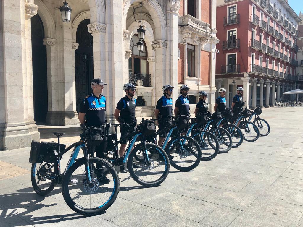 La Concejalía de Salud Pública y Seguridad Ciudadana del Ayuntamiento de Valladolid ha reactivado con motivo de la época estival la Sección Ciclista de la Policía Municipal. Así lo ha explicado su responsable, el concejal Alberto Cuadrado, durante la celebración de un acto que ha tenido lugar en la Plaza Mayor, con el fin de informar acerca de las características de esta Unidad que integran un total de diez policías -un oficial al mando y nueve agentes, siete hombres y dos mujeres-, quienes realizarán su servicio diario en bicicleta y patrullarán en binomios en los turnos de mañana y tarde, hasta el mes de octubre, en función de las condiciones climatológicas.