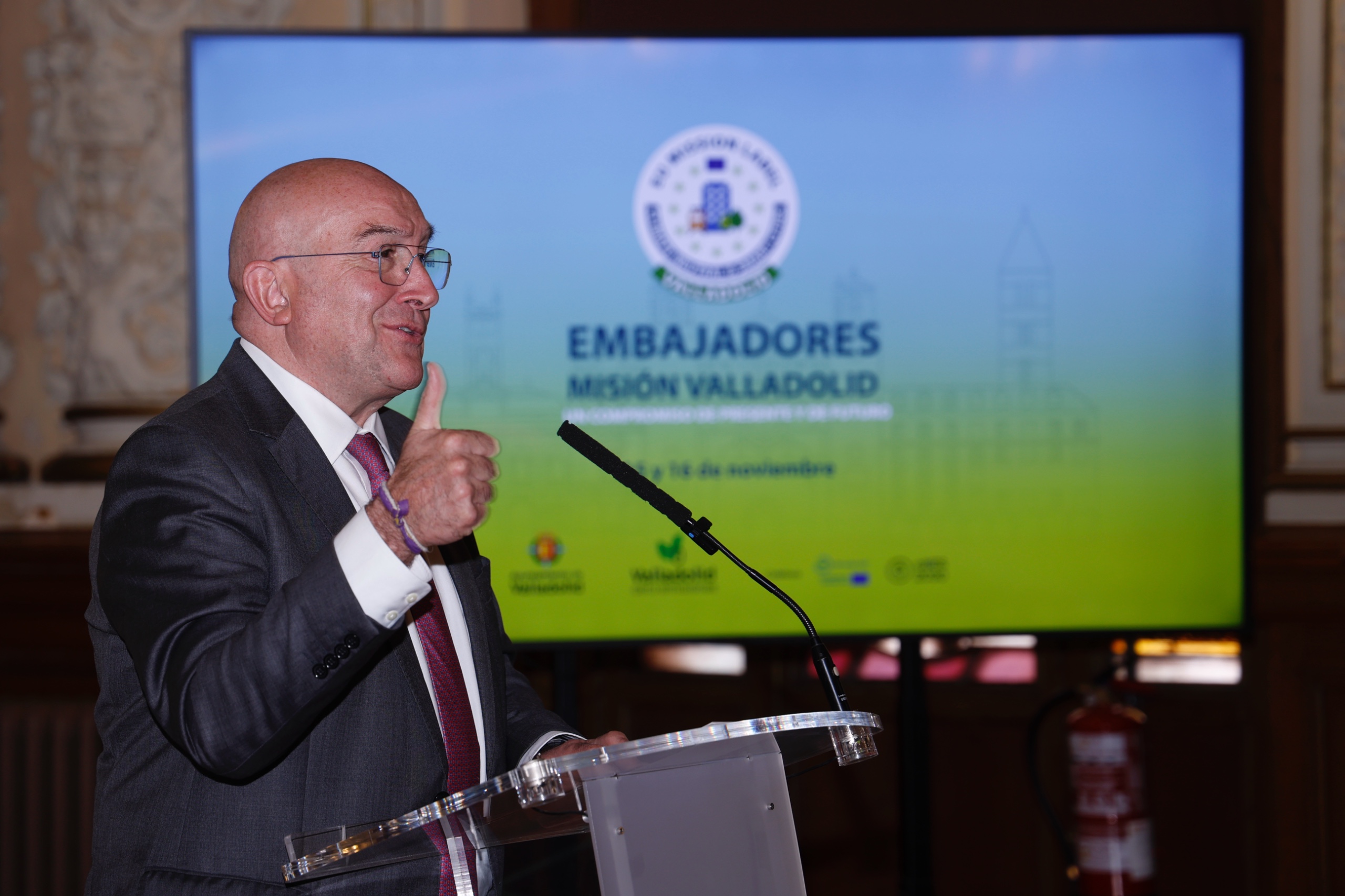 La jornada ‘Embajadores Misión Valladolid: Un compromiso de presente y de futuro’ ha celebrado la primera de sus sesiones dedicadas a la Misión Climática, en la que el alcalde, Jesús Julio Carnero, ha querido agradecer el compromiso de todos los que están sumando su esfuerzo para reducir la huella de carbono de la ciudad. "La Misión Climática de Valladolid es una misión de ciudad, en la que desde el principio hemos buscado la involucración de todos vosotros para alcanzar nuestra meta común, dado que sin vuestro apoyo no será posible alcanzar el ambicioso objetivo de reducir las emisiones de carbono, que permita que nuestra ciudad sea más saludable y con mejor calidad de vida para todos nuestros ciudadanos, pero también más competitiva y a la vanguardia de las ciudades europeas. Es un logro y un orgullo como ciudad que esta ambiciosa Misión cuente ya con más de 150 entidades procedentes del tejido productivo, asociativo, académico e institucional vallisoletano", ha subrayado el alcalde en sus palabras de agradecimiento.