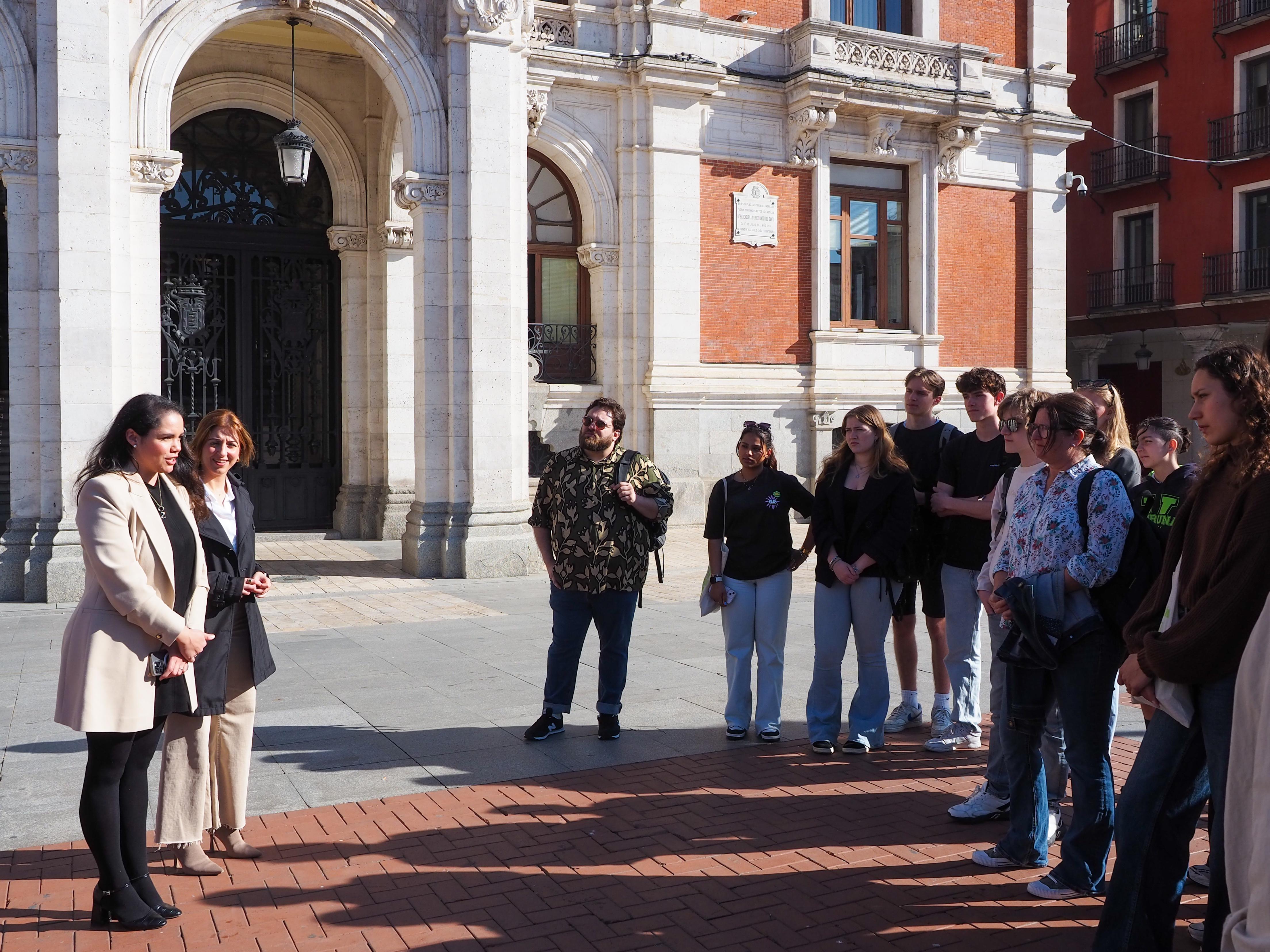 La Casa Consistorial ha acogido hoy a un grupo de estudiantes de centros educativos de Italia y Países Bajos que participan en el proyecto de Erasmus+ ‘Abriendo nuestras mentes, mejores personas’, gestionado por el Colegio Jesús y María de Valladolid.