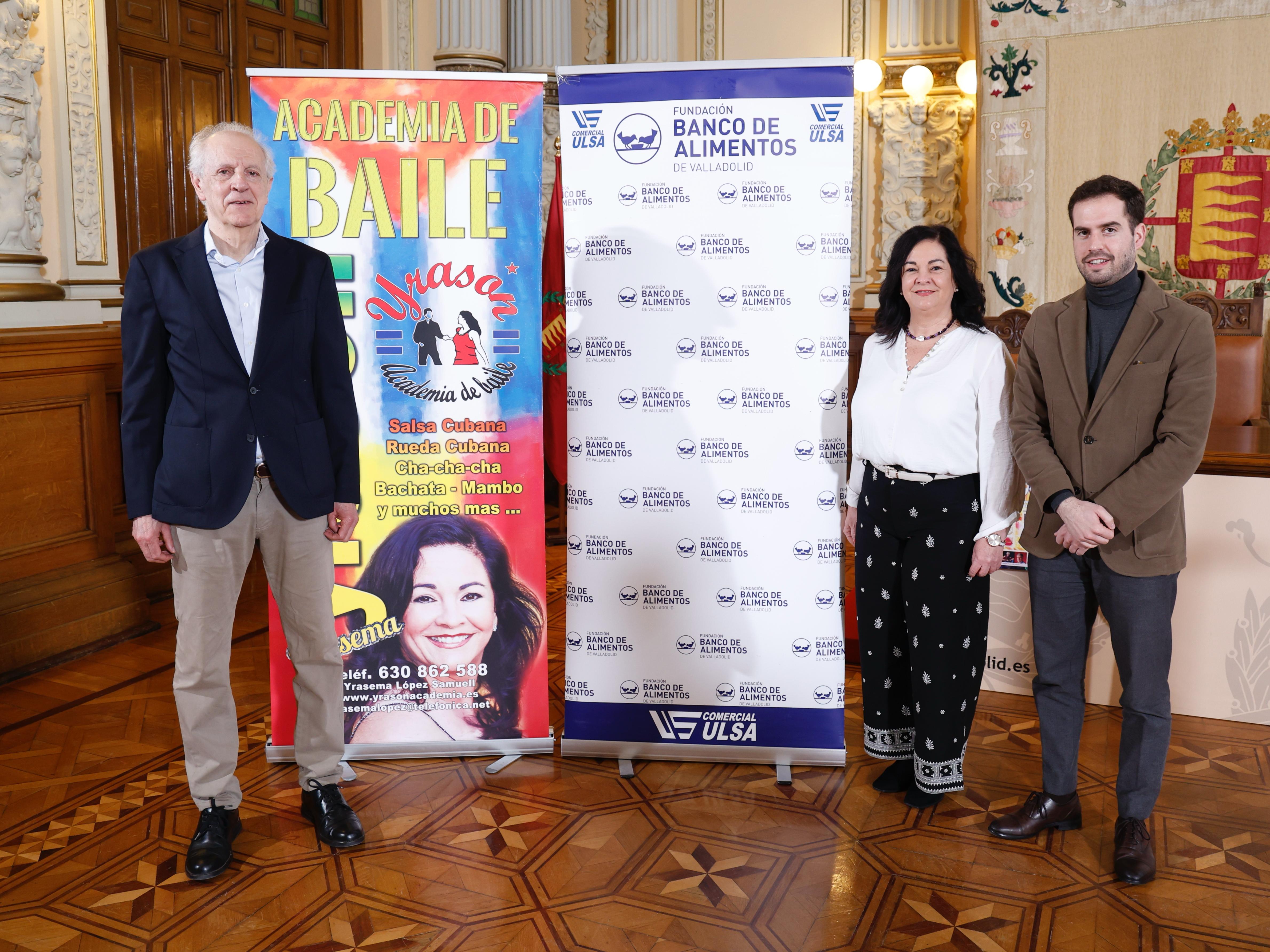 El concejal de Personas Mayores, Familia y Servicios Sociales, Rodrigo Nieto, ha presentado la séptima edición del Encuentro de Baile ‘Sonsolidario’, que se celebrará el próximo domingo 30 de marzo, en la Cúpula del Milenio, a partir de las 18:00h. En el acto, que se ha llevado a cabo en el Salón de Recepciones de la Casa Consistorial, ha estado acompañado por Tomás Pérez, vicepresidente del Banco de Alimentos de Valladolid, e Yrasema López, directora de la academia de baile ‘Yrasón’, organizadora del evento.