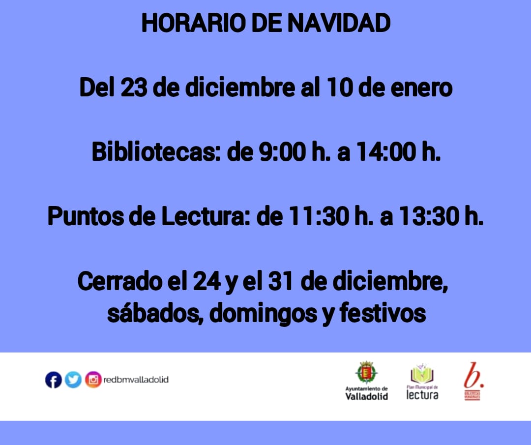 HORARIO DE NAVIDAD DE BIBLIOTECAS Y PUNTOS DE LECTURA