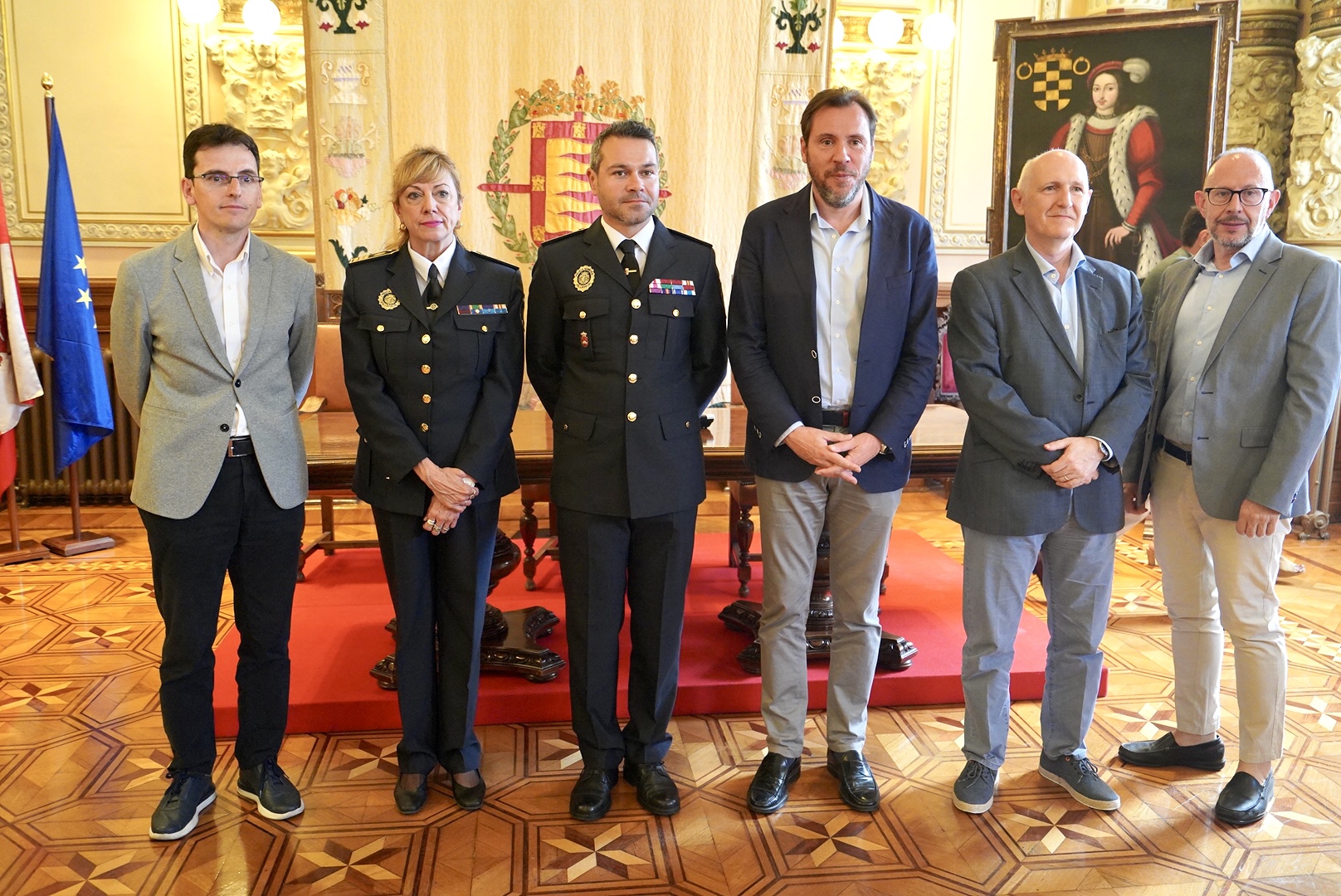 La edad de la media de los policías municipales en 2015 era de 50 años, hoy es de 33. Es un dato que evidencia la apuesta del Ayuntamiento de Valladolid en los últimos ocho años por la mejora de un servicio esencial. Hoy ha tomado posesión el nuevo intendente jefe de la Policía Municipal, Juan Manuel González Becerra . El alcalde en funciones, Óscar Puente, acompañado por el concejal en funciones de Planificación y Recursos, Pedro Herrero, y el secretario municipal, Jesús Mozo Amo, ha presidido el acto en el Salón de Recepciones, a donde han acudido, además de familiares y compañeros, el concejal de Salud Pública y Seguridad Ciudadana, Alberto Palomino, y el concejal de Recursos Humanos, Juan Carlos Hernández.