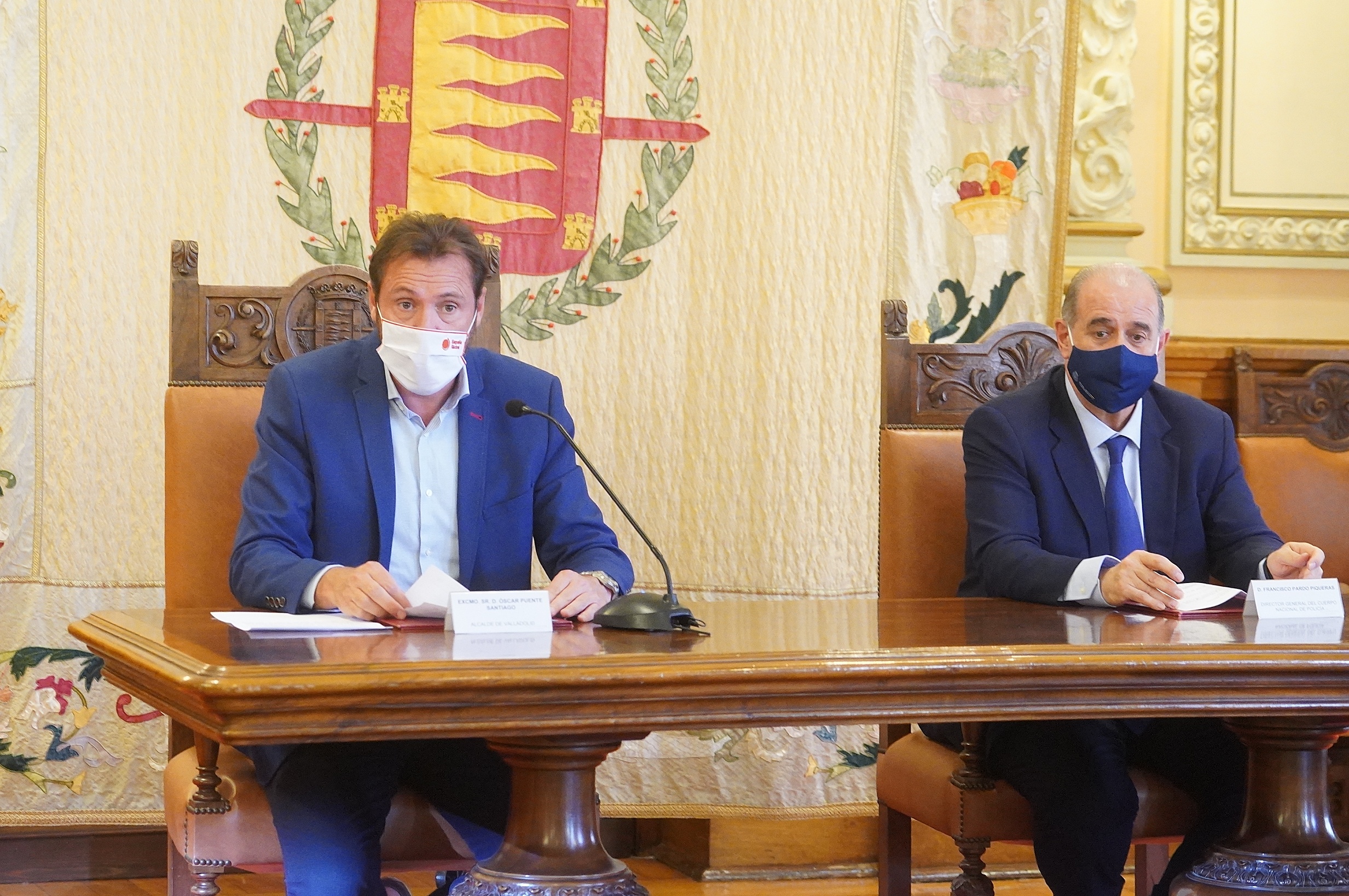 El director general de la Policía, Francisco Pardo Piqueras, ha presentado , junto al alcalde de Valladolid los actos centrales programados para el "Día de la Policía", que se celebrarán este año en la capital vallisoletana. Han estado presentes también en este Salón de Recepciones el concejal de Salud Pública y Seguridad Ciudadana, Alberto Palomino; José Ángel González Jiménez, director adjunto operativo; Juan José Campesino Tejero, jefe superior de Policía Nacional en Castilla y León, y la intendente jefa de la Policía Municipal de Valladolid, Julia González Calleja.