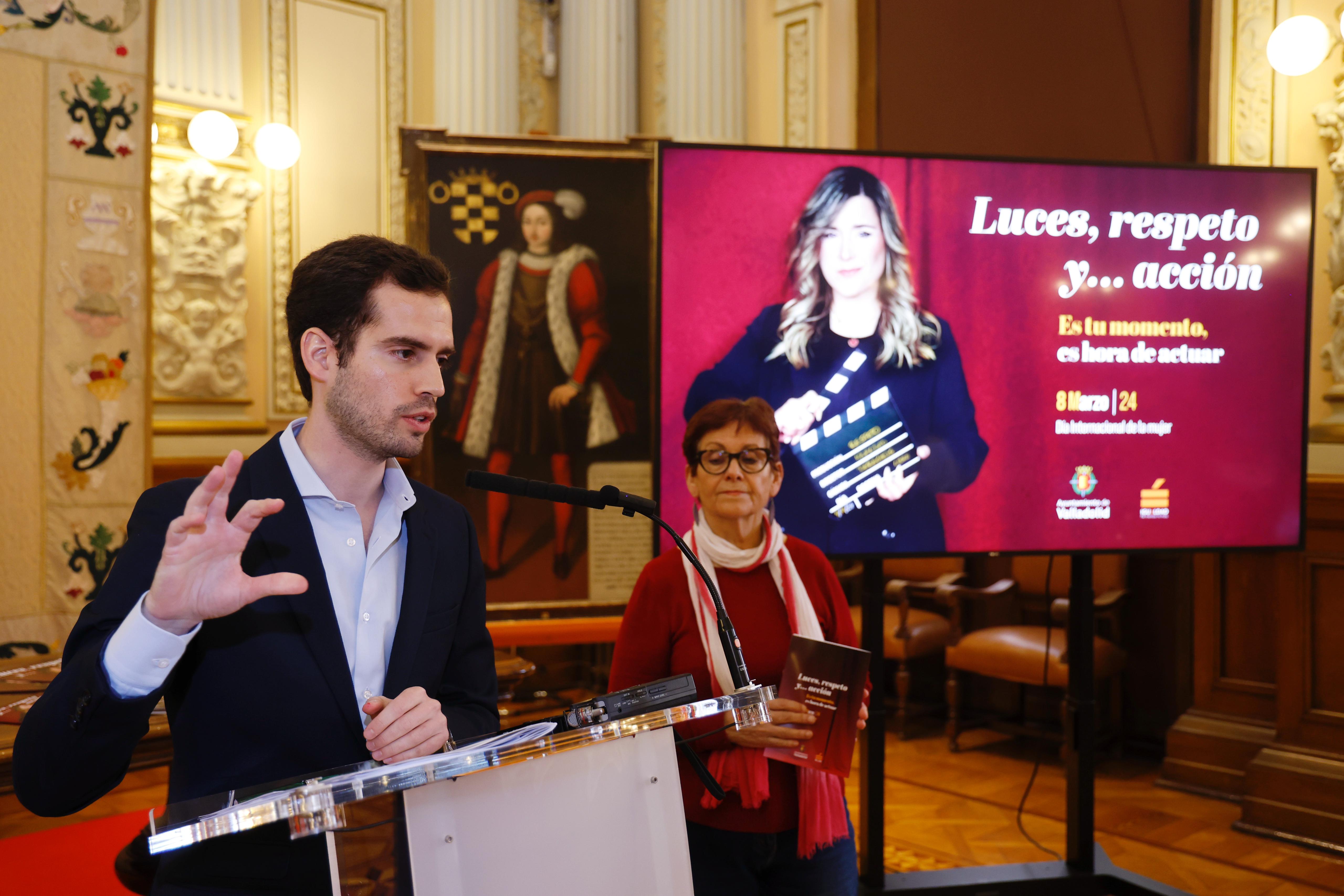 El concejal de Personas Mayores, Familia y Servicios Sociales, Rodrigo Nieto, ha presentado esta mañana en la Casa Consistorial el programa de actividades organizadas con motivo del 8M, Día Internacional de la Mujer. Ha estado acompañado por la vicepresidenta del Consejo Municipal de las Mujeres, Nina Infante; el director del Gabinete de Presidencia y portavoz institucional del Real Valladolid, David Espinar, y la productora ‘Pandora’, Juan José Rodríguez.