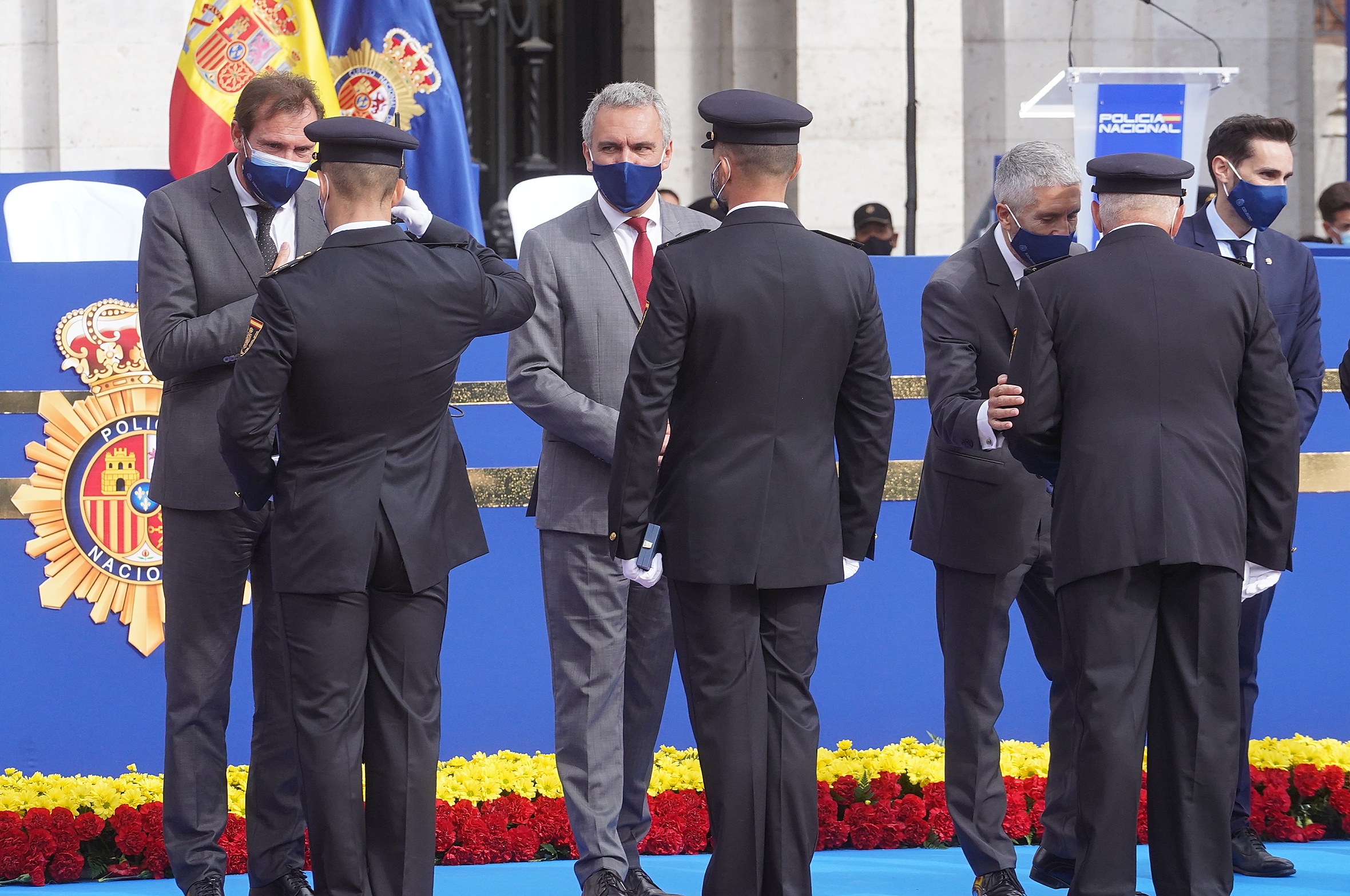 Fernando Grande-Marlaska ha agradecido a los policías nacionales su trabajo para proteger los valores constitucionales "allí donde sea necesario, sin importar en qué circunstancias deben hacerlo, por muy arriesgadas que sean".