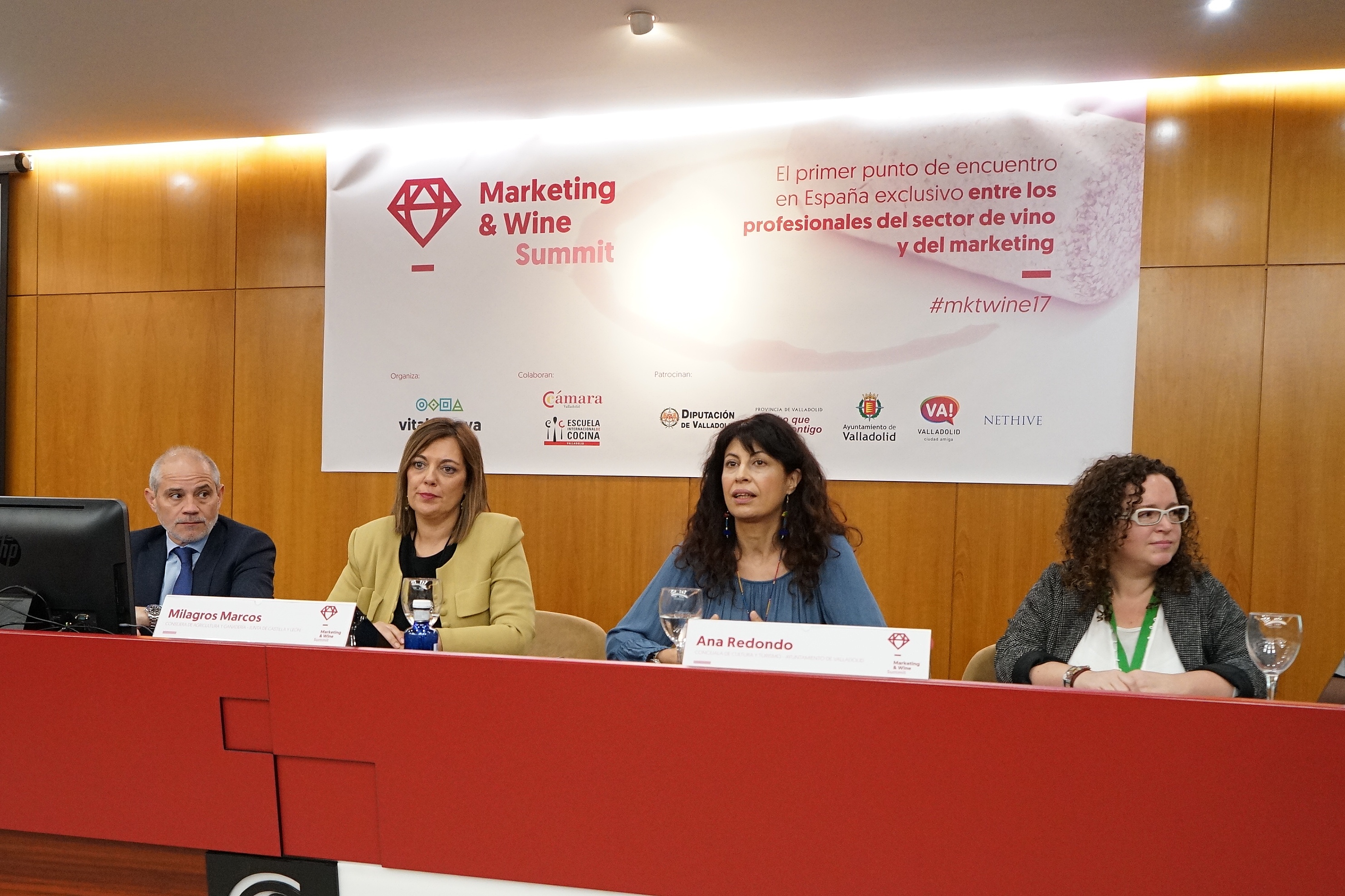 Marketing & Wine Summit, el primer punto de encuentro en España exclusivo entre los profesionales del sector del vino y del marketing que se celebra en la Cámara de Comercio, Industria y Servicios de Valladolid, contó este miércoles con la participación de la concejala de Cultura y Turismo del Ayuntamiento de Valladolid, que apoya institucionalmente esta iniciativa de la empresa VitalInnova, antesala del Concurso Mundial de Vinos de Bruselas que comienza mañana en la capital del Pisuerga.