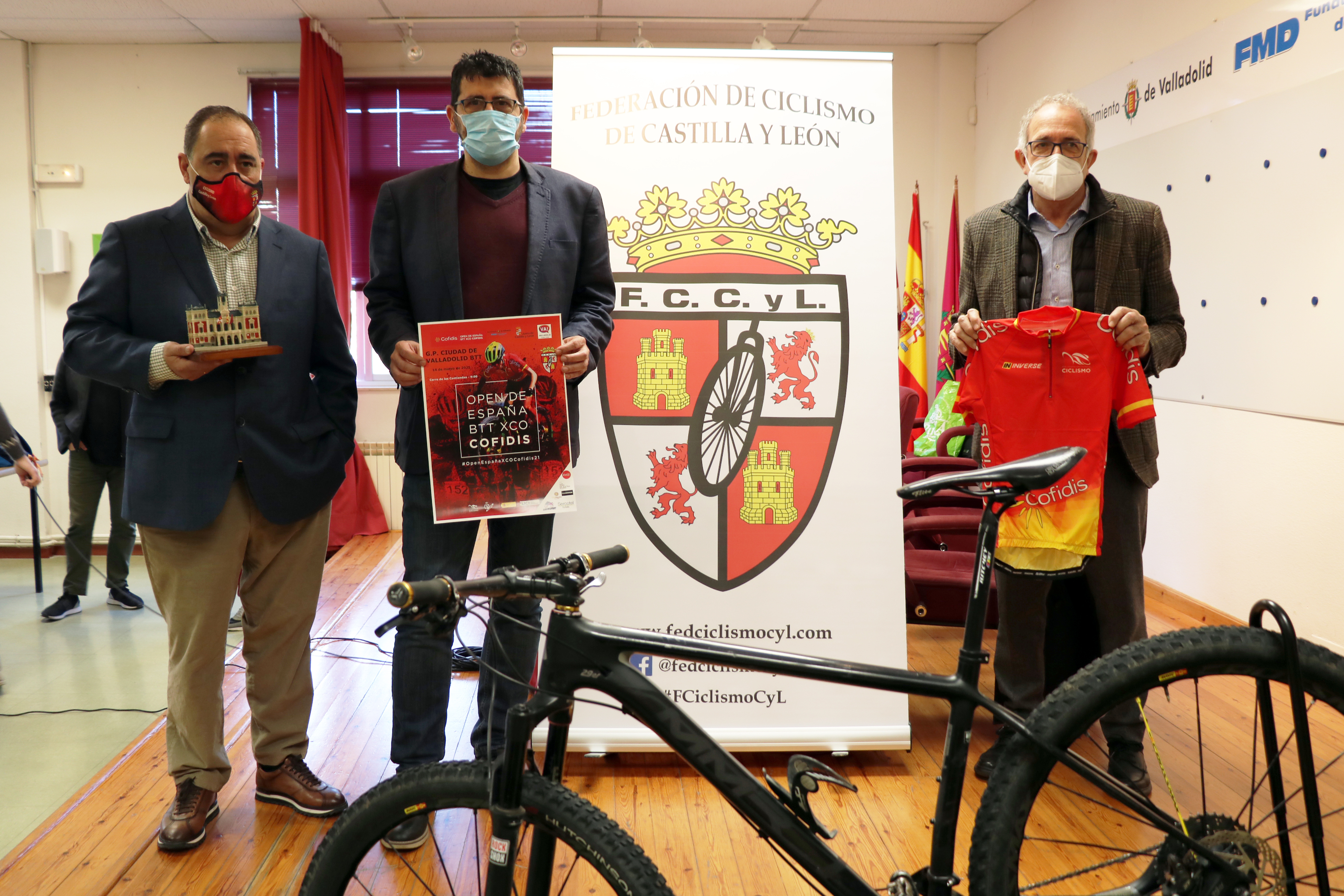 El concejal de Participación Ciudadana y Deportes, Alberto Bustos, junto a los presidentes de las federaciones autonómica y nacional de ciclismo, han presentado esta mañana el Open de España de BTT XCO - Gran Premio Ciudad de Valladolid que se disputará el domingo 14 de marzo en el circuito de Las Contiendas. Con récord absoluto de participantes, competirán cerca de 700 deportistas de las distintas categorías tanto femeninas como masculinas, siempre siguiendo estrictos protocolos sanitarios.