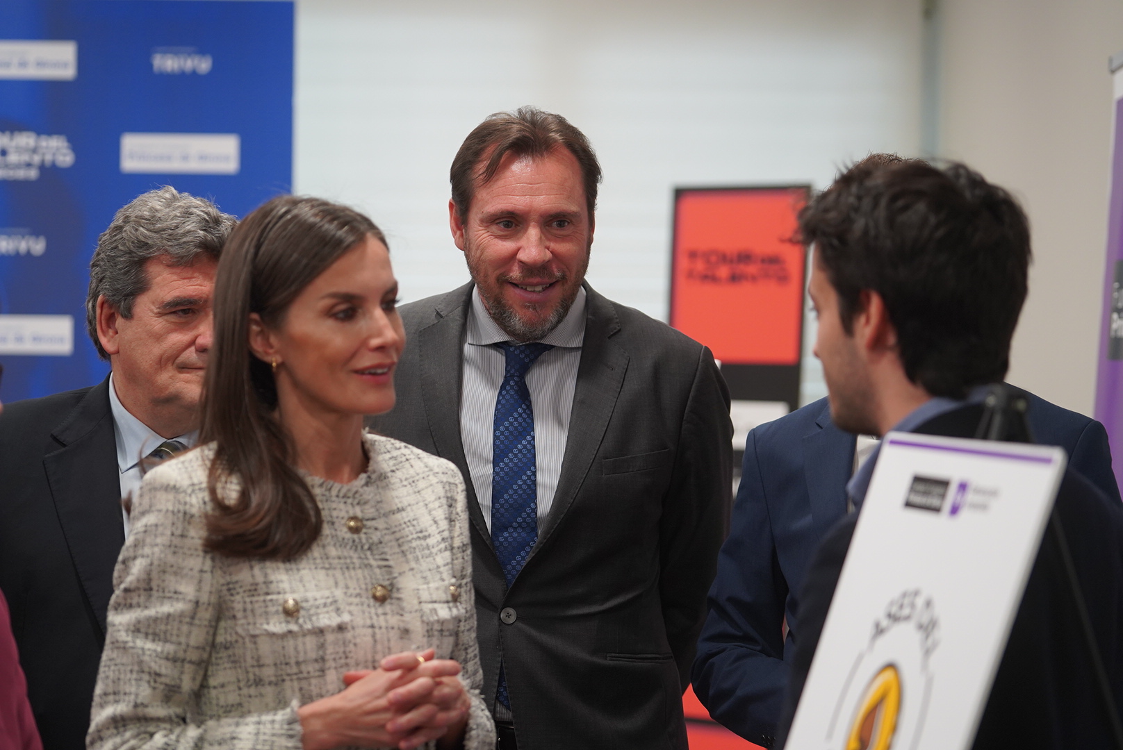"Muy interesantes". Así ha calificado la Reina Letizia las iniciativas de cuatro jóvenes que han presentado en Valladolid propuestas innovadoras. La Reina ha presidido la jornada central del Tour del Talento que se celebra esta semana en Valladolid. A su llegada a la Feria de Valladolid - acompañada del ministro de Inclusión, Seguridad Social y Migraciones, José Luis Escrivá, - ha sido recibida por el presidente de la Junta de Castilla y León, Alfonso Fernández Mañueco, el alcalde, Óscar Puente, y otras autoridades. Al acto también han asistido varios miembros del Gobierno Municipal.