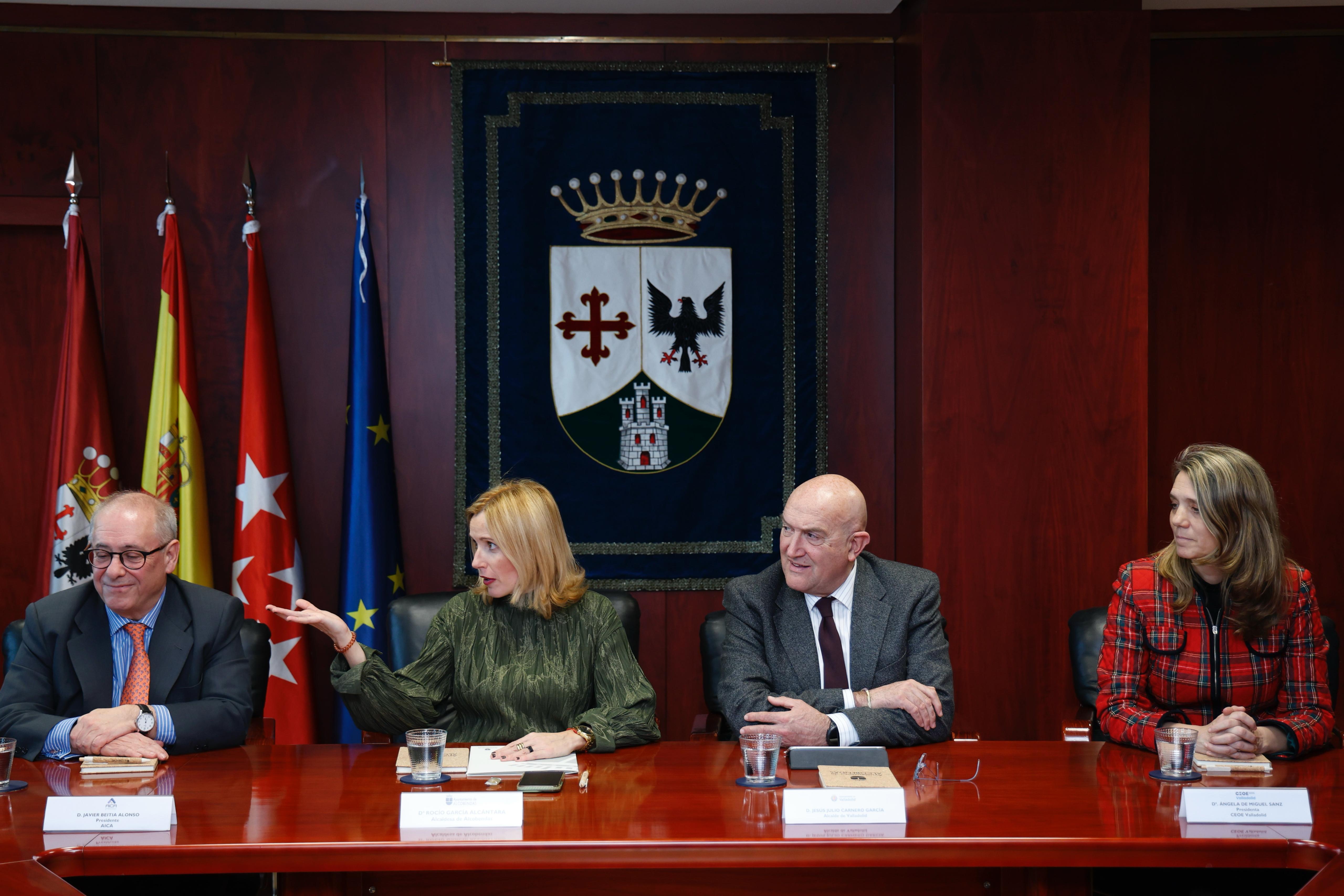 Hoy el alcalde, Jesús Julio Carnero, ha mantenido una reunión de trabajo en el Ayuntamiento de Alcobendas, junto a su alcaldesa, Rocio García, para escuchar y estudiar el modelo de éxito empresarial de la localidad madrileña, a través de su HUB ‘Madrid Living Business’, que lleva dando grandes resultados desde hace 10 años, ahora con 800 multinacionales instaladas en su territorio. Todo ello basado en la atracción y fidelización de empresas y el talento humano.