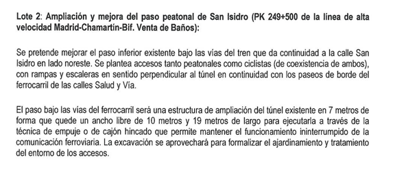 De los tres pasos dos son nuevos: el paso inferior peatonal y de bicicletas entre las calles Padre Claret y Andalucía (que permitirá una nueva conexión entre el barrio Delicias y el centro de la ciudad con una anchura de 10 metros) y otro paso peatonal y de bicicletas entre las calles Unión y Pelícano (la estructura tendrá 9 metros de anchura y 17 de longitud en el barrio Pajarillos). Además, se contempla la ampliación y mejora del actual paso peatonal de San Isidro, con un túnel de 10 metros de ancho junto a la Plaza Circular.