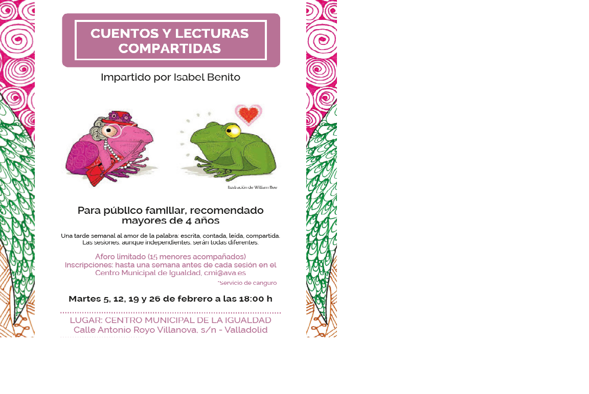 Inscripciones: hasta una semana antes de cada sesión en el Centro Municipal de Igualdad, cmi@ava.es