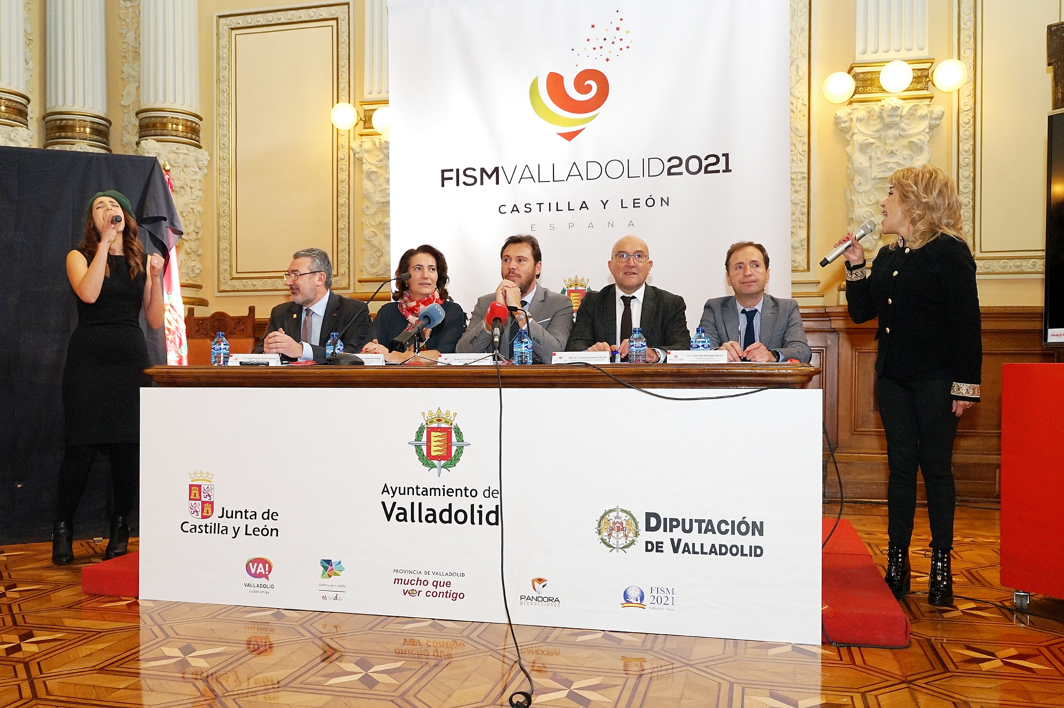 A la presentación de la candidatura en el Salón de Recepciones de la Casa Consistorial han asistido el alcalde, Óscar Puente; el presidente de la Diputación, Jesús Julio Carnero; la consejera de Cultura y Turismo de la Junta de Castilla y León, Josefa García; y los presidentes de la candidatura FSM Valladolid 2021 y el de la Asociación de Magos Internacionales, Juan José Rodríguez y Ángel José de Vicente –respectivamente-.