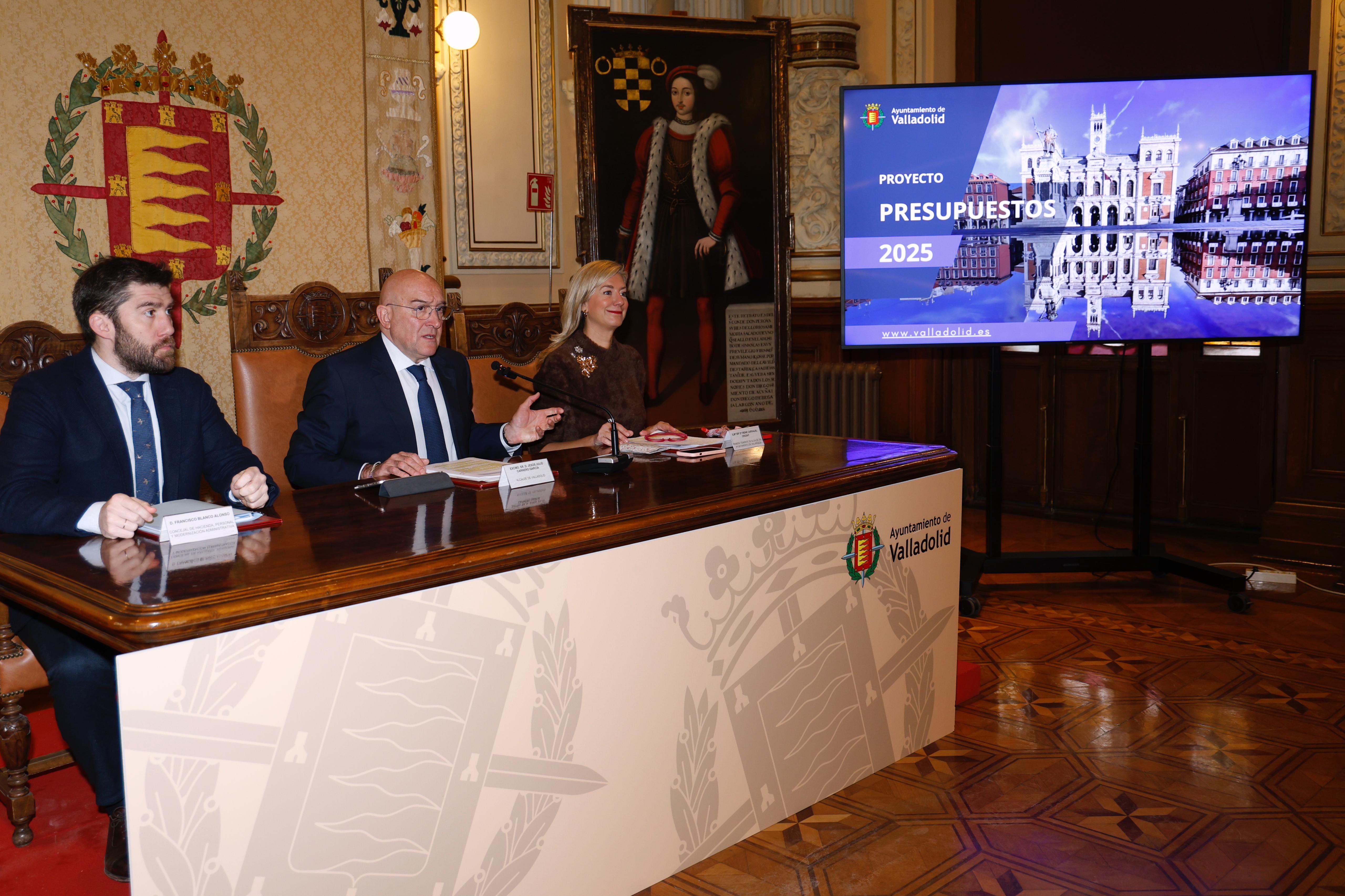 El alcalde, Jesús Julio Carnero, ha presentado hoy el proyecto de presupuestos del Ayuntamiento de Valladolid para el año 2025, que ha sido aprobado esta mañana en la Junta de Gobierno Local, y cuya cuantía asciende, a nivel consolidado, a 444.987.133 euros, lo que supone un 4,46% más respecto al presupuesto inicial consolidado del ejercicio anterior. Eso se traduce en 19.011.877 euros más.