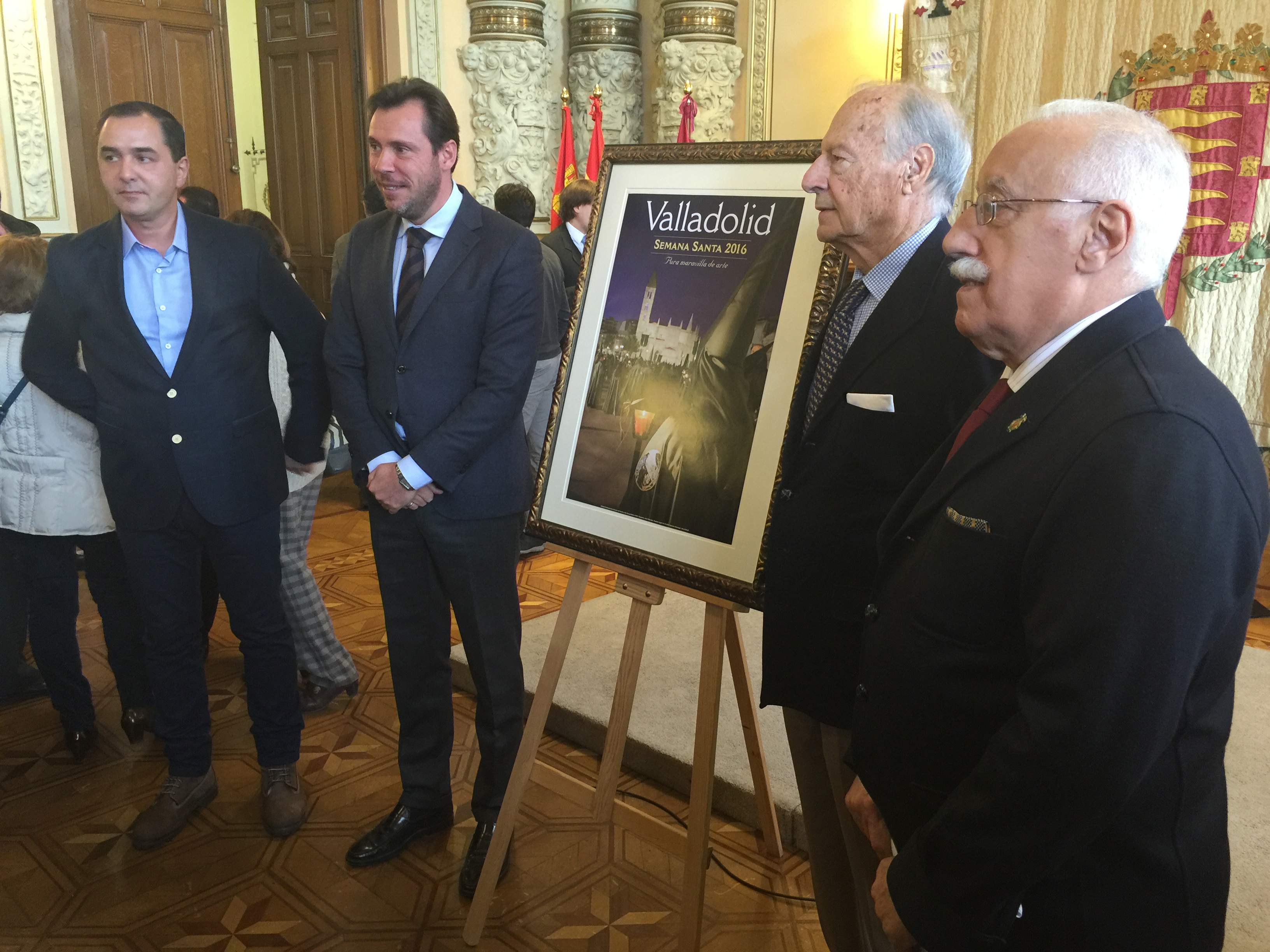 El alcalde de Valladolid, Oscar Puente Santiago, presidió esta mañana el acto oficial de presentación del cartel, impreso sobre una fotografía de Julián Díaz Bajo, y el pregonero de la Semana Santa 2016, el empresario riosecano Vicente Garrido Capa.