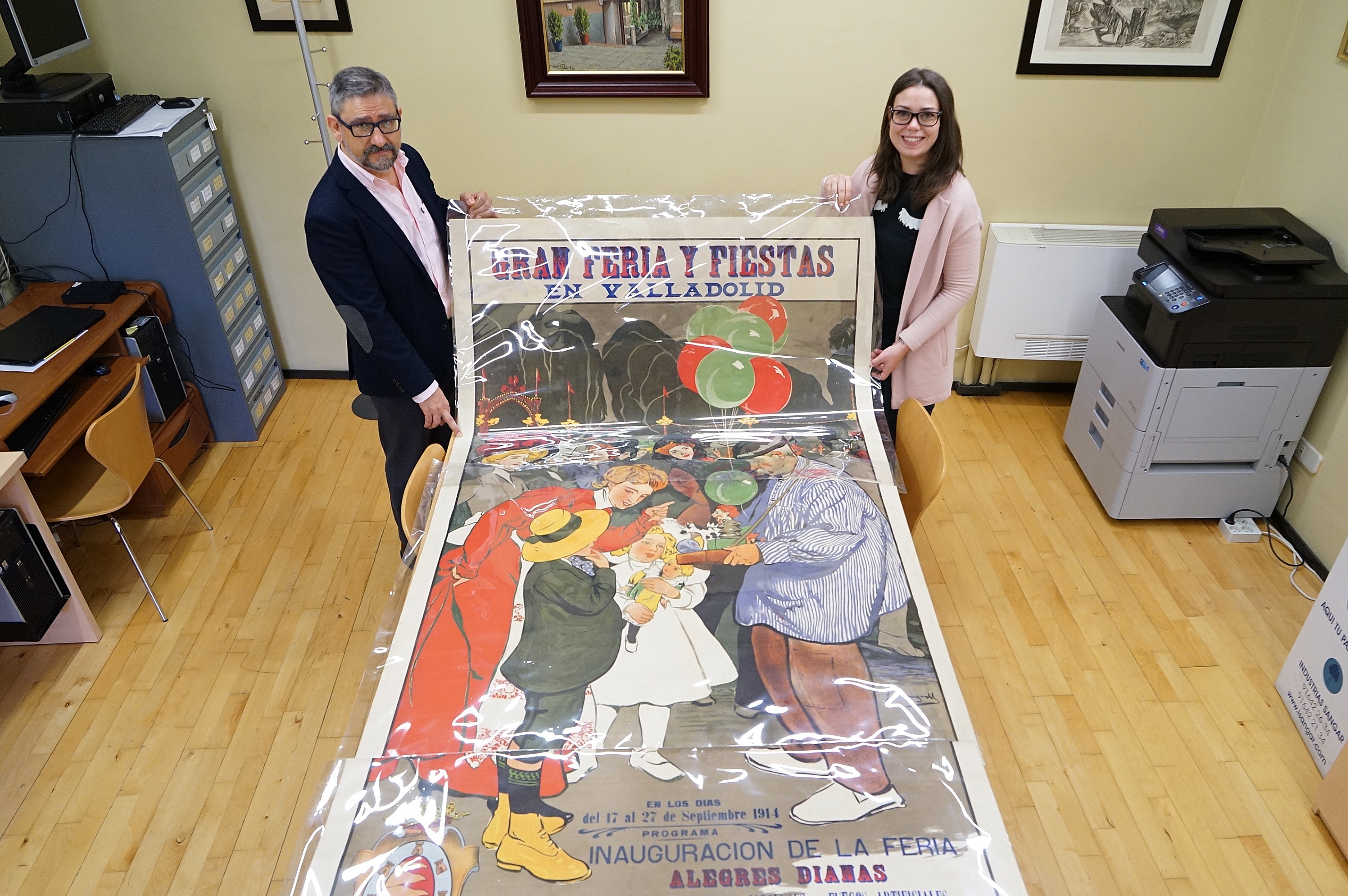 • El Ayuntamiento de Toledo dona un cartel de las fiestas de Valladolid del año 1914, que completará la colección que se conserva en el Archivo MunicipalLa concejala de Educación y Cultura de Toledo, Nuria Cogolludo y el director del Archivo Municipal de esa ciudad, Mariano García, han hecho entrega, esta mañana, al director del Archivo Municipal de Valladolid, Eduardo Pedruelo, de un cartel de las Fiestas...