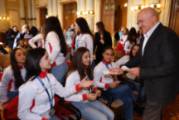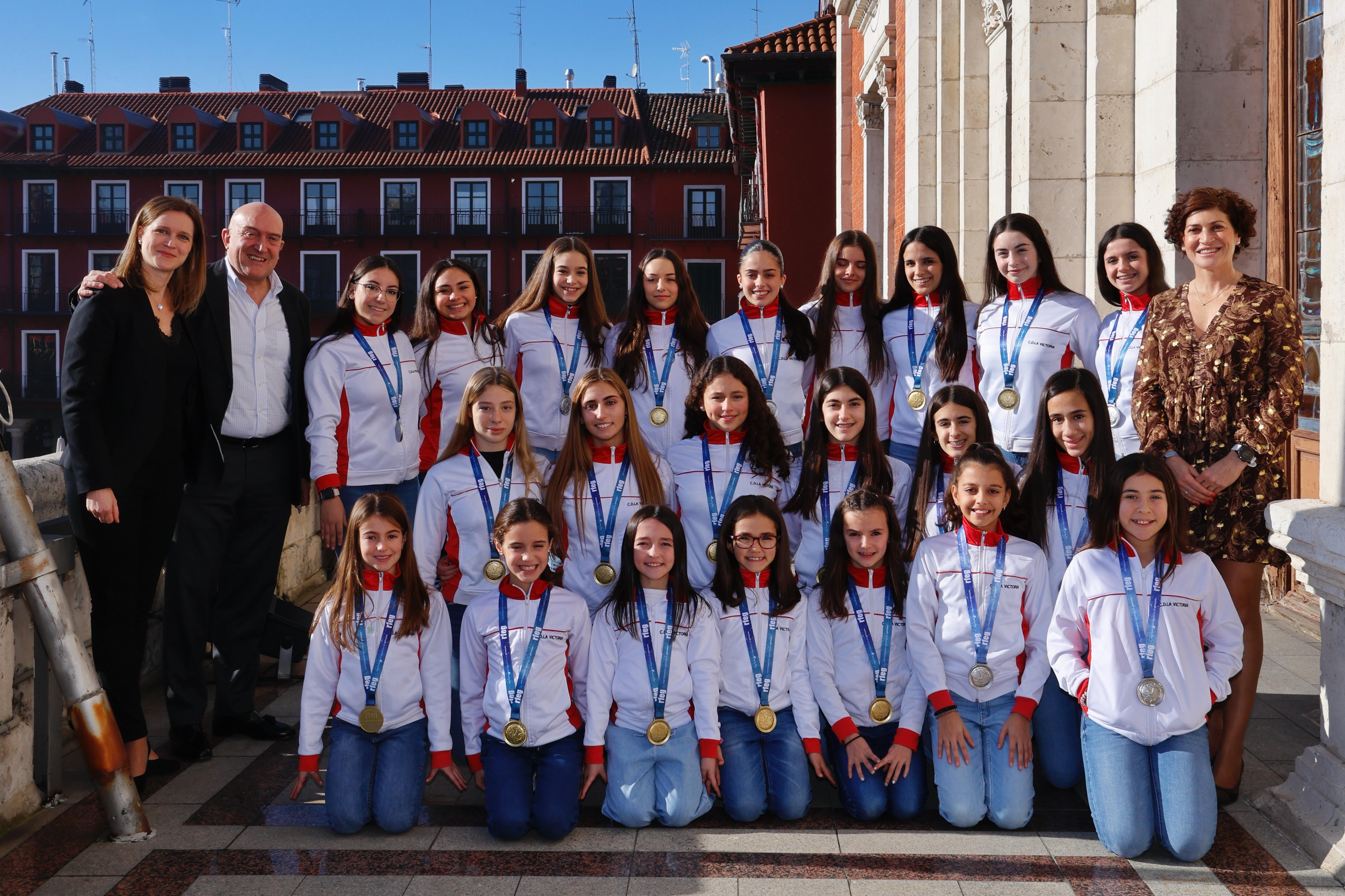 El alcalde de Valladolid, Jesús Julio Carnero, acompañado por la concejala de Participación Ciudadana y Deportes, Mayte Martínez, ha recibido hoy en el Ayuntamiento al Club Deportivo La Victoria, con el propósito de felicitar a sus gimnastas y a su cuerpo técnico por los logros que han conseguido a lo largo de 2023 en las distintas competiciones de carácter nacional en las que han participado