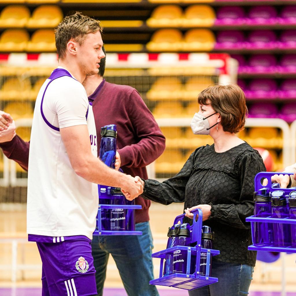 El acuerdo implica la desaparición de los envases de plástico de un solo uso en el día a día del conjunto blanquivioleta. De esta forma, los jugadores y el cuerpo técnico contarán con bidones personalizados y trasladarán a la sociedad la importancia de adoptar hábitos saludables para cuidar la salud y la del planeta bebiendo agua del grifo de Valladolid.