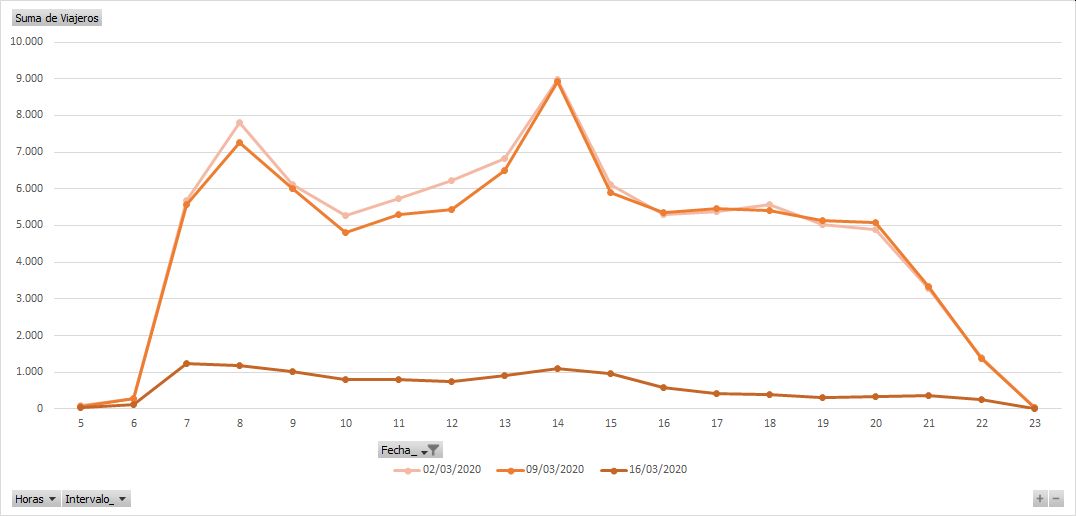 La empresa municipal del transporte intensifica las medidas higiénicas. El número de pasajeros cae un 87% respecto al lunes anterior
